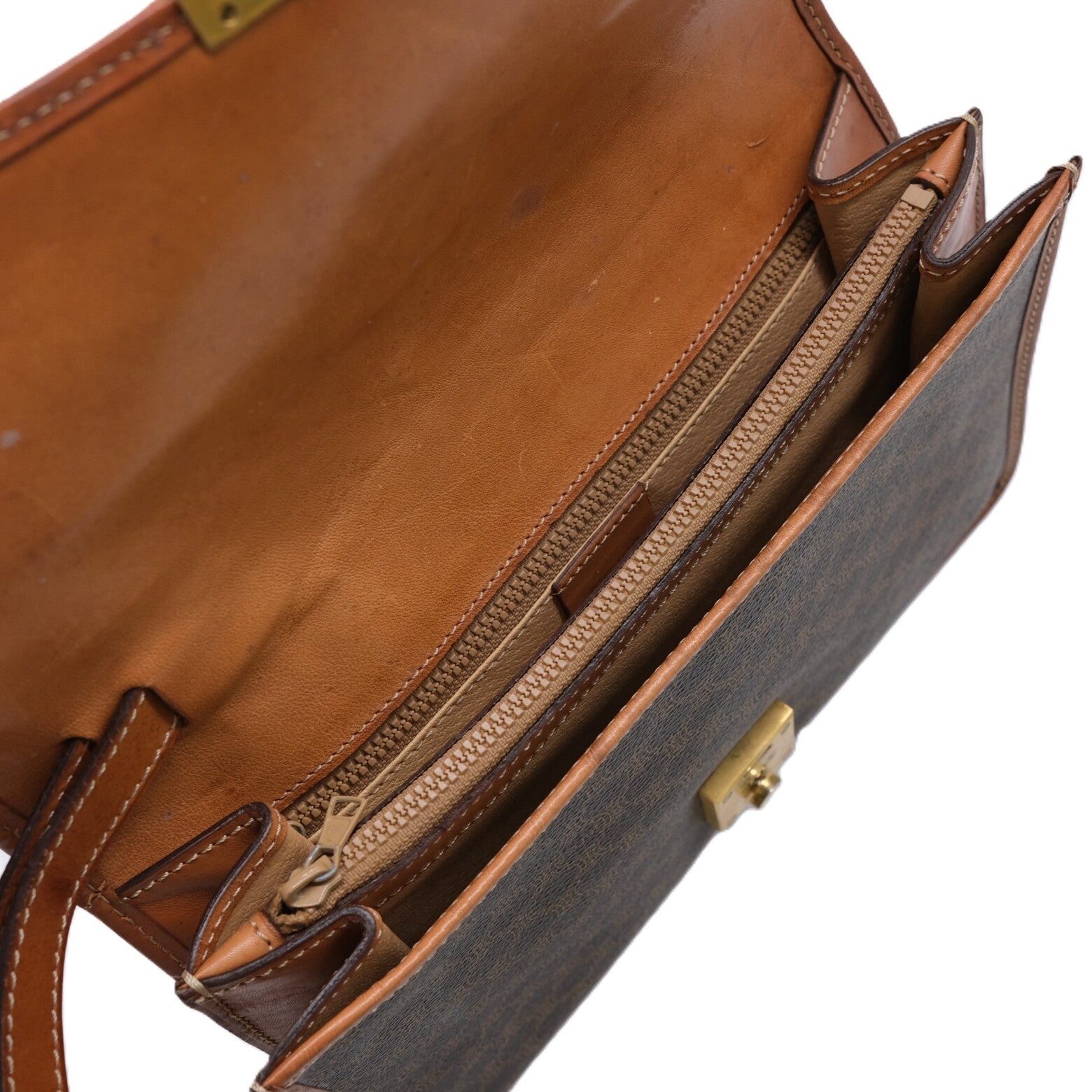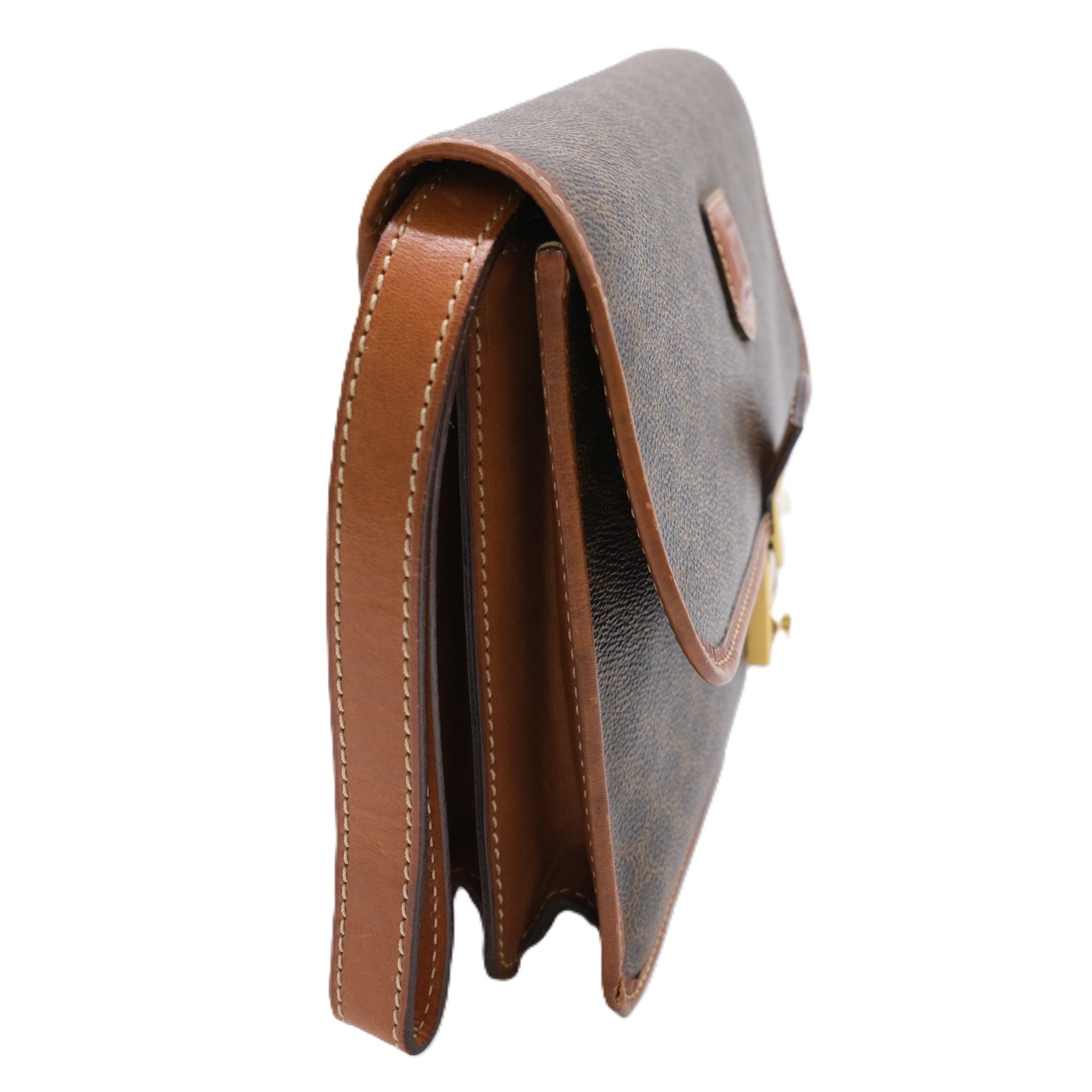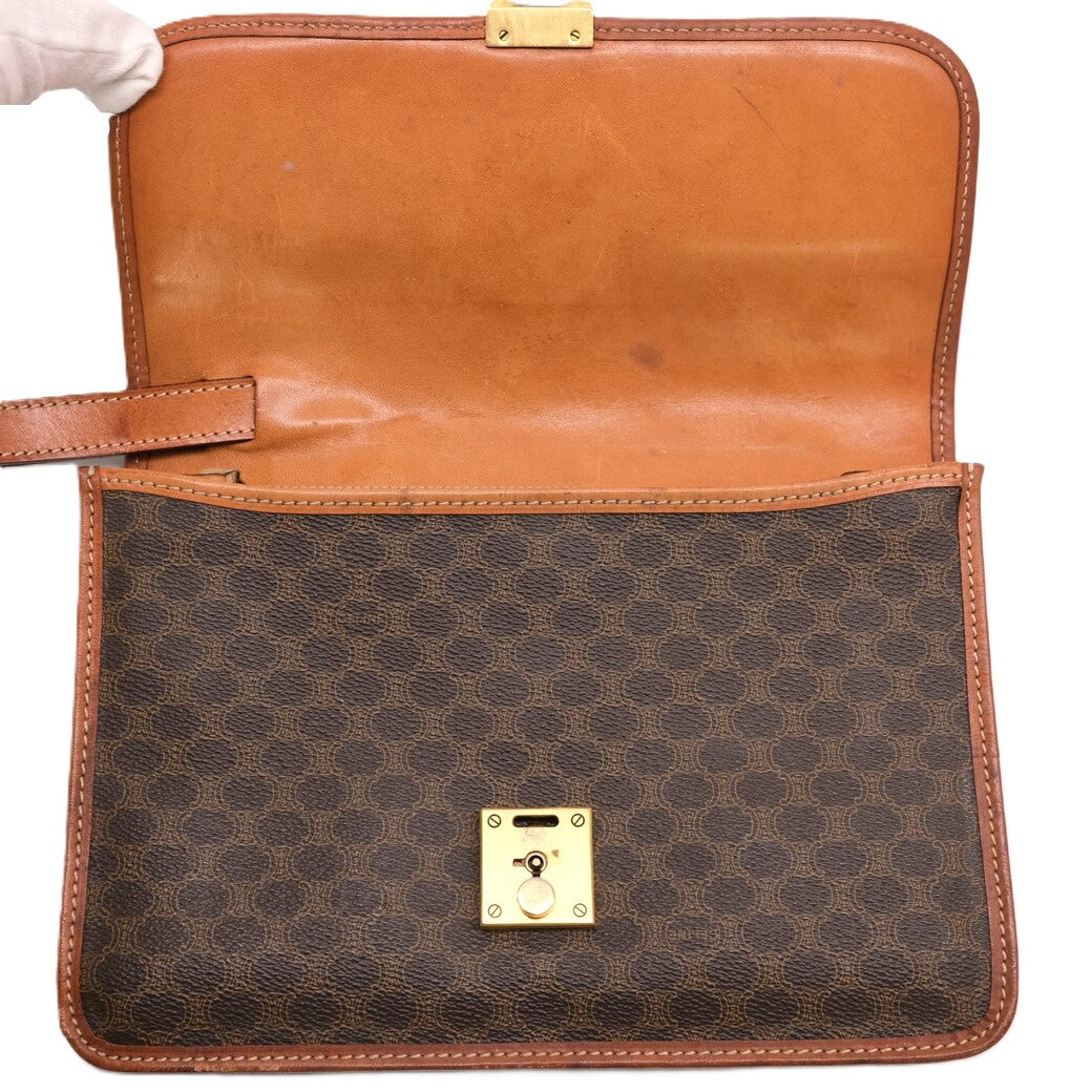 Celine Vintage Macadam PVC Clutch Bag Brown