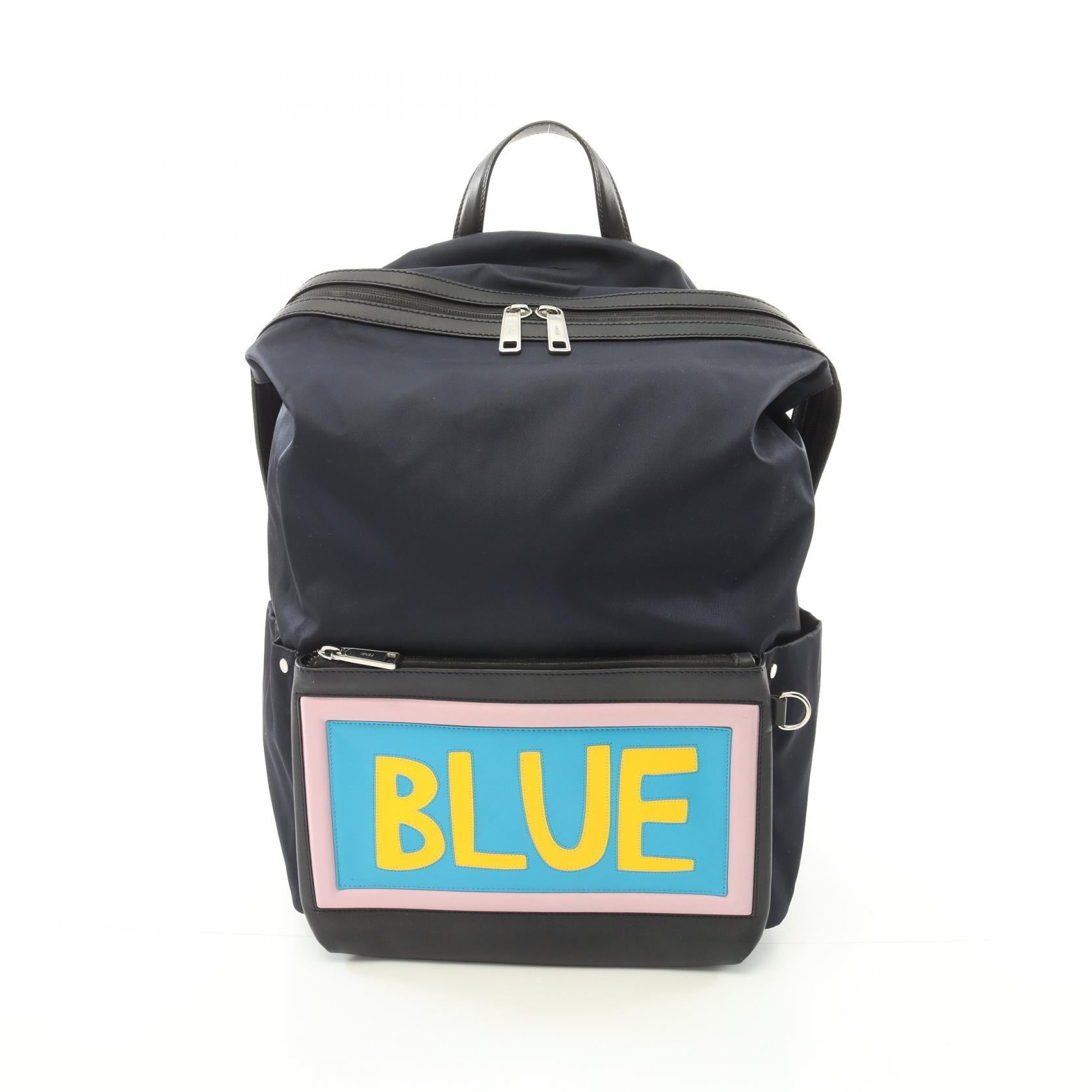 Fendi Nylon Leather Backpack Blue 7VZ035