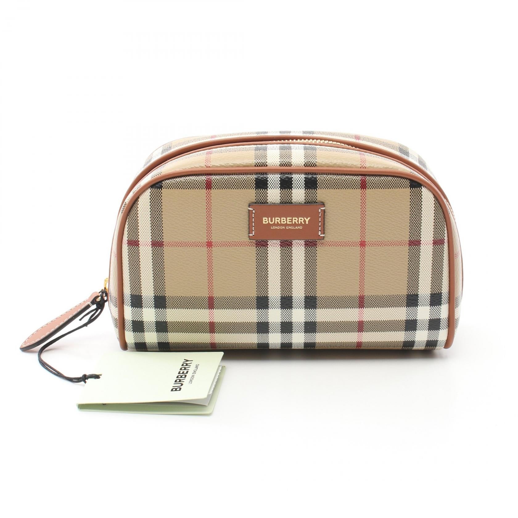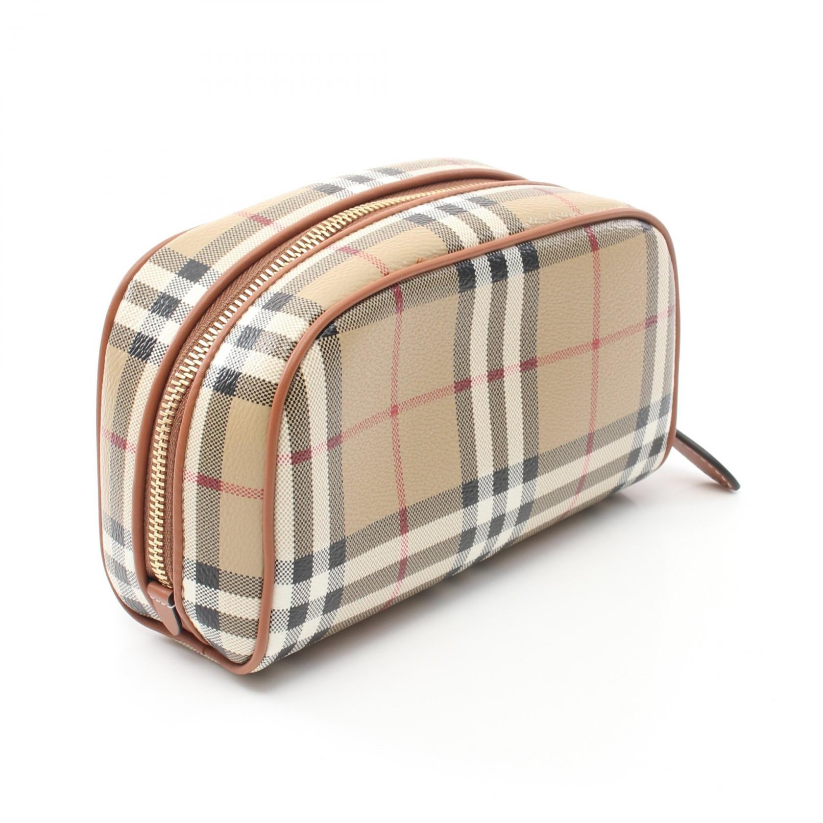 Burberry Check Travel Pouch PVC Canvas Leather