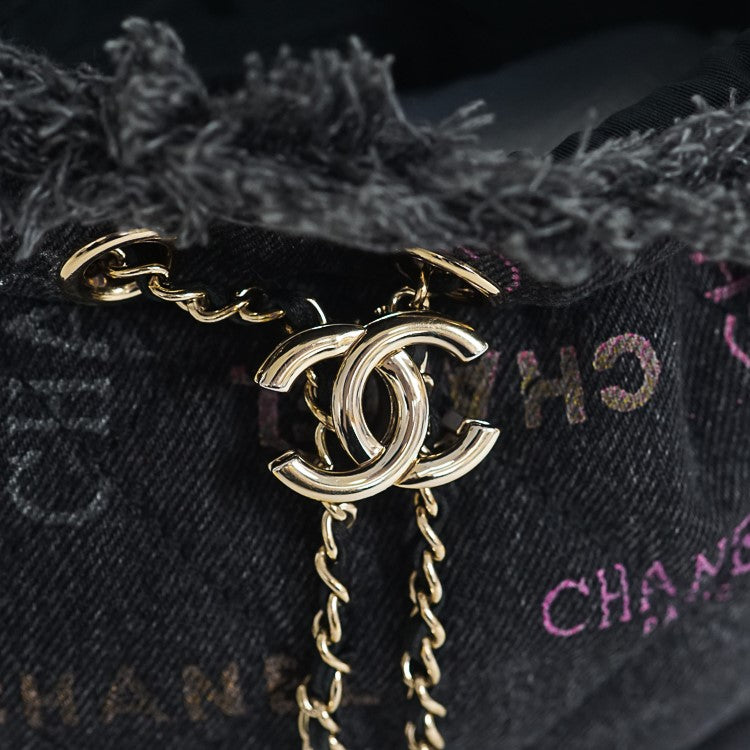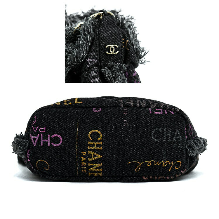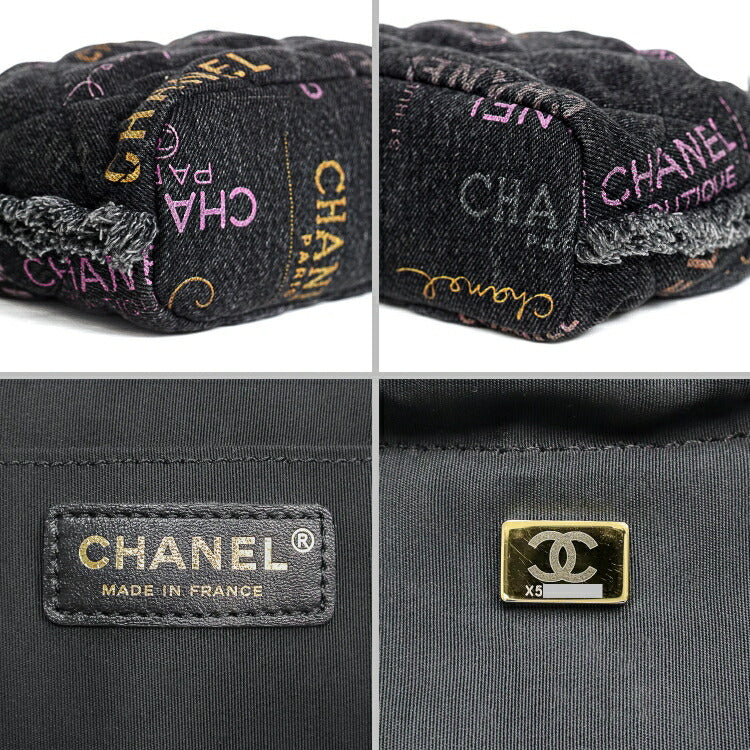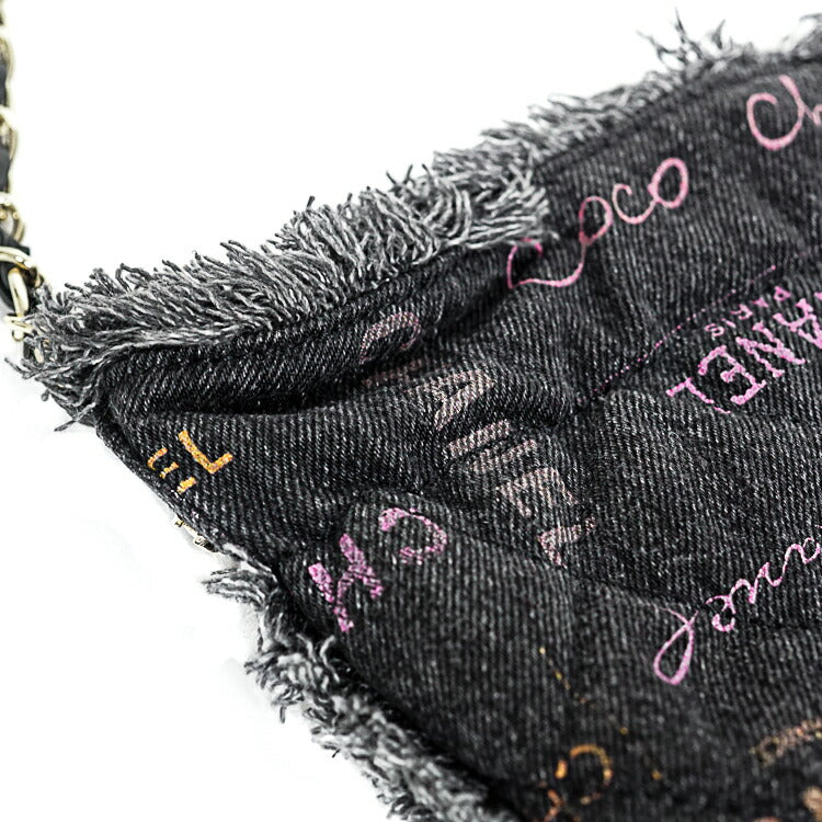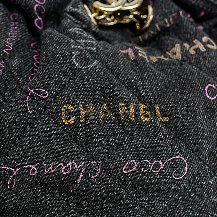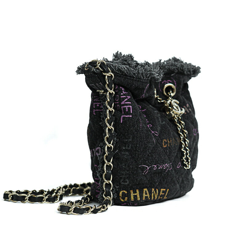 Chanel Denim Lambskin Matelasse Logo Chain Crossbody Bag