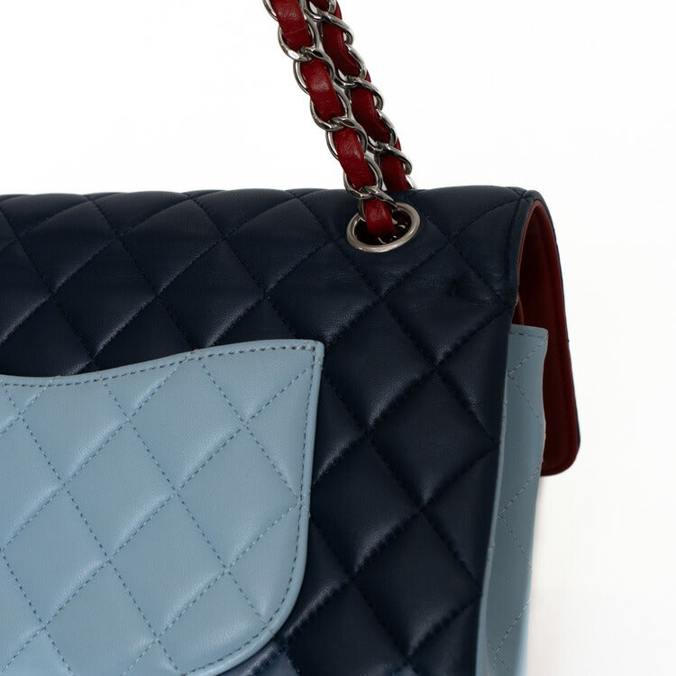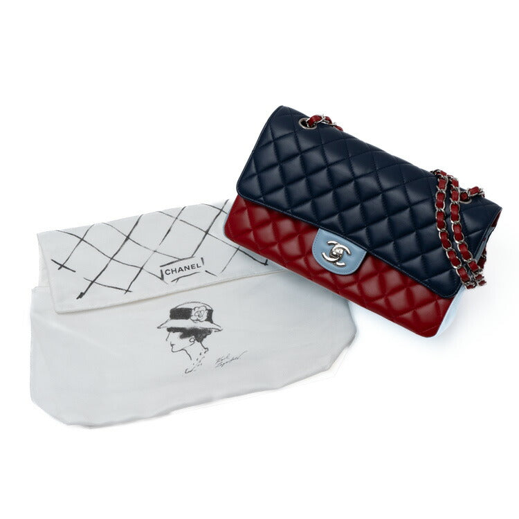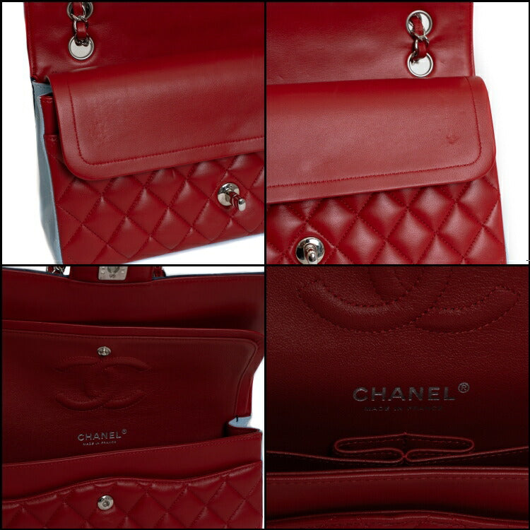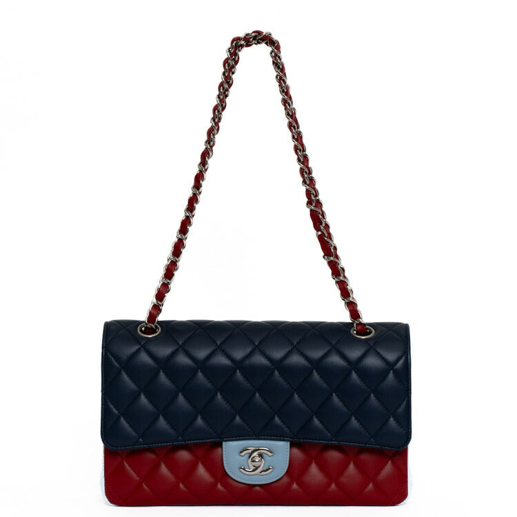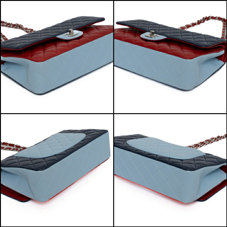 Chanel Lambskin Double Flap Tricolor Chain Shoulder Bag