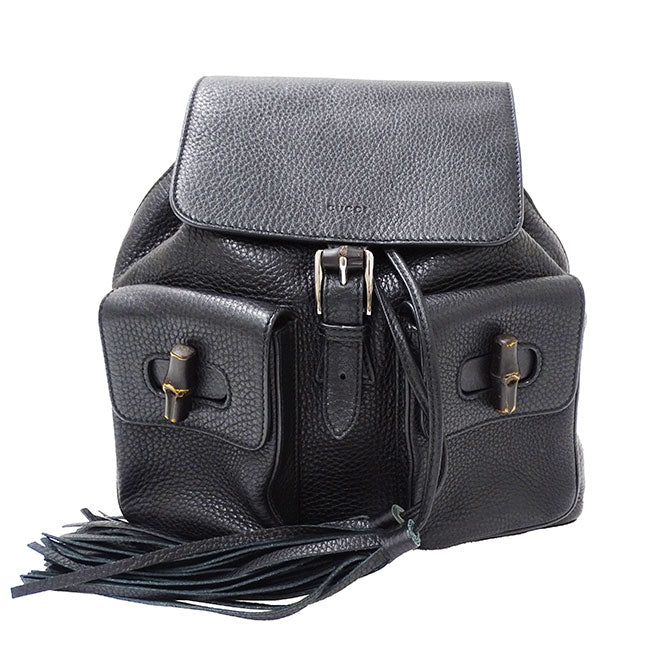 Gucci Leather Bamboo Backpack Black