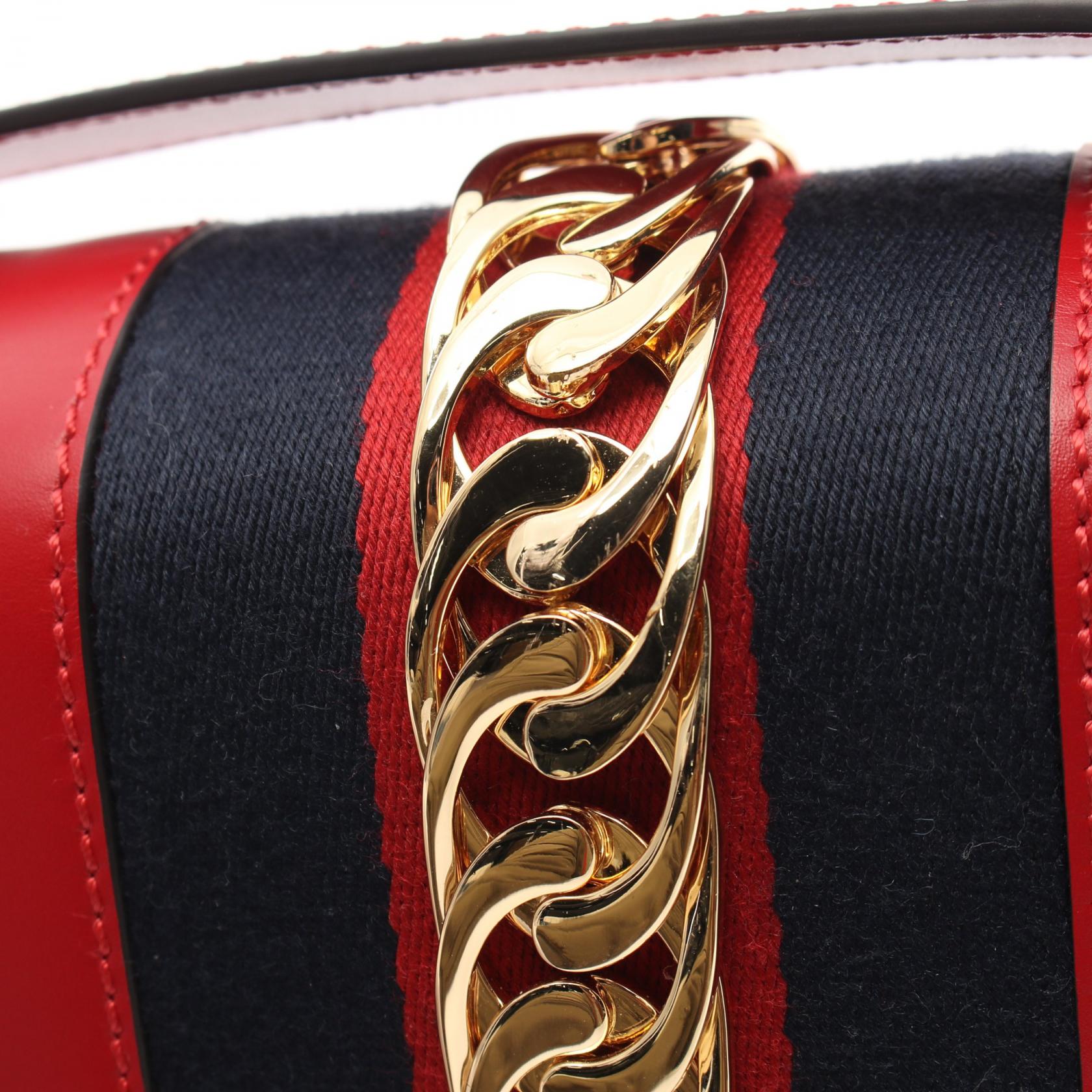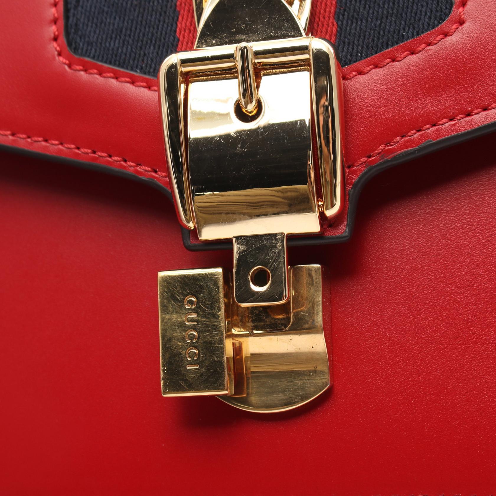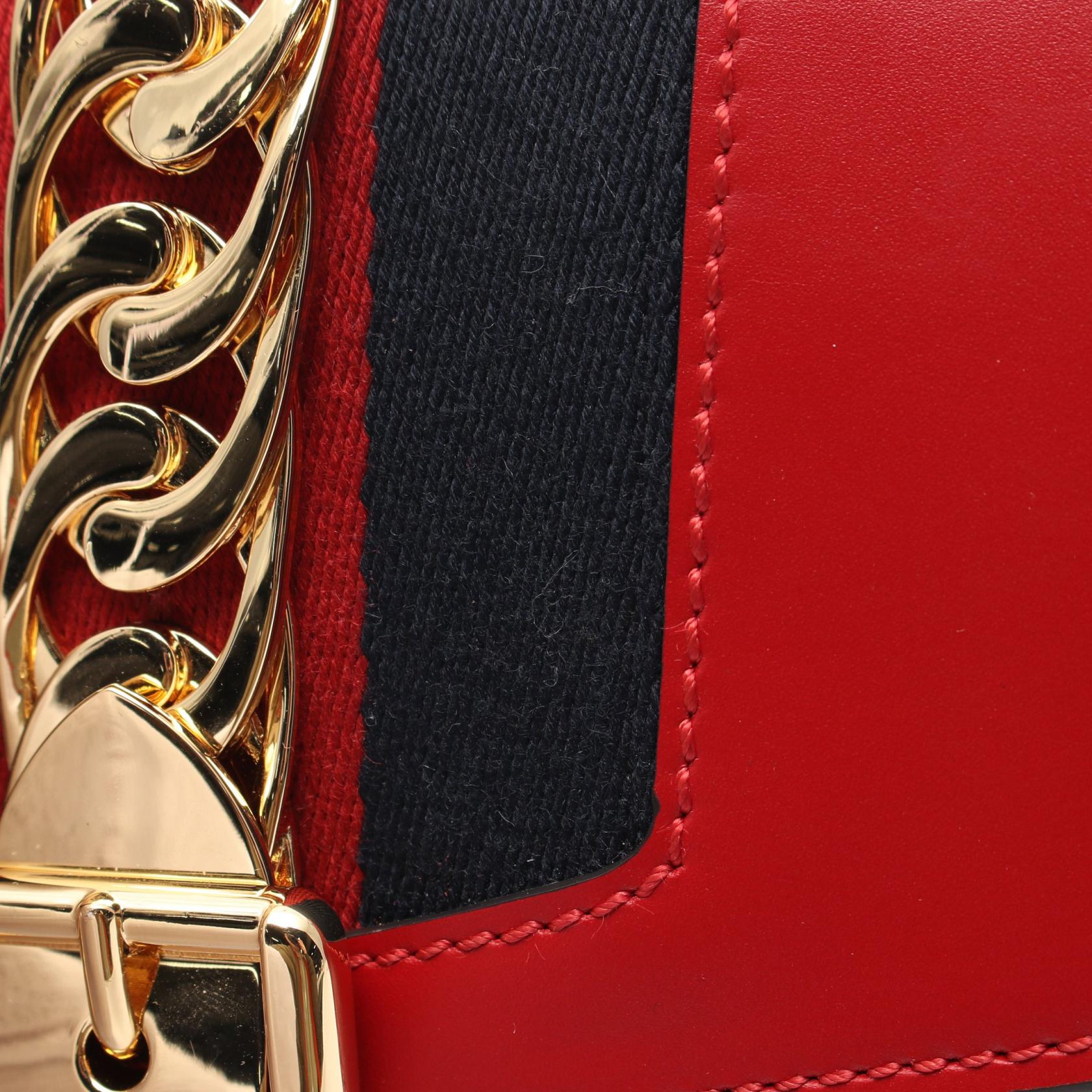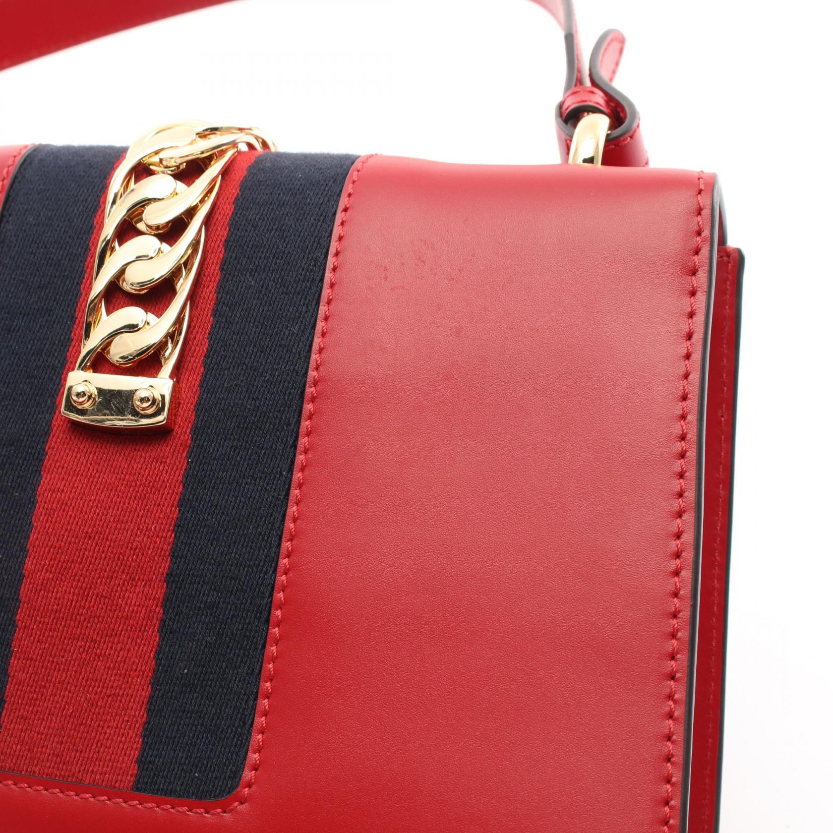 Gucci Sylvie Small Leather Shoulder Bag Red