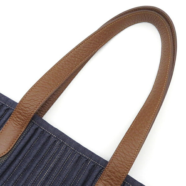 Hermes Calicut Cotton Leather Tote Bag Navy