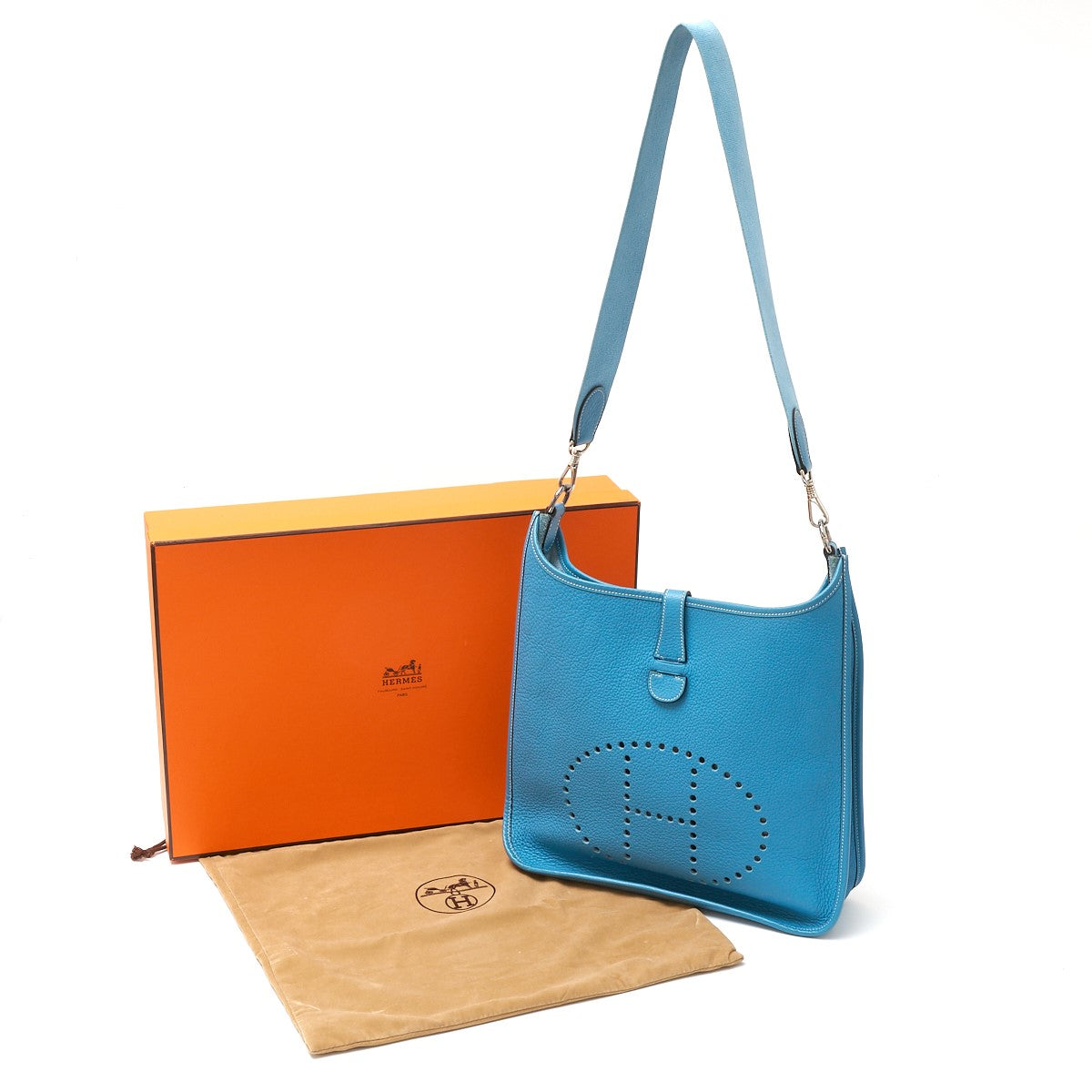 Hermes Evelyne GM Crossbody Bag Blue Leather