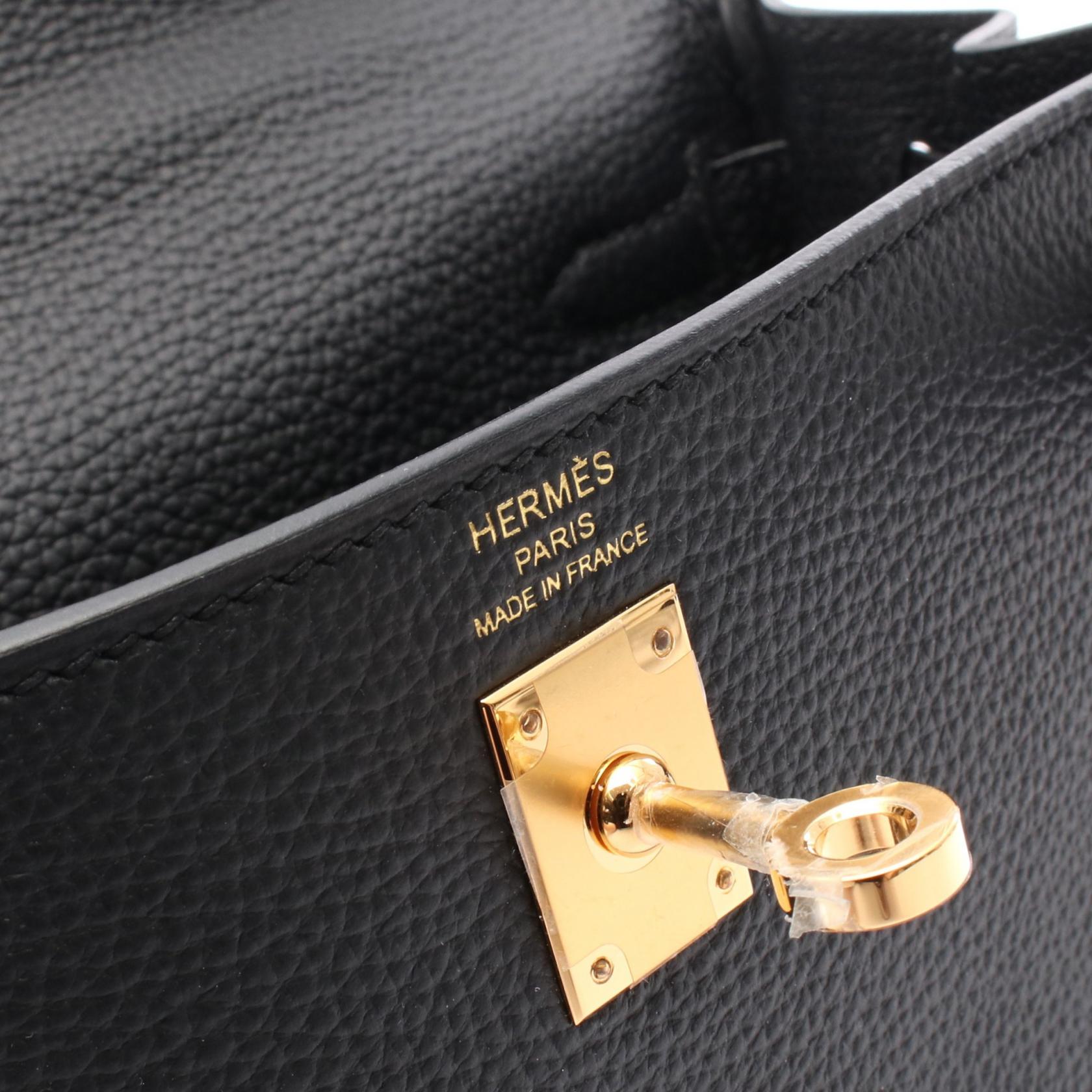 Hermes Kelly 25 Togo Leather Handbag Black