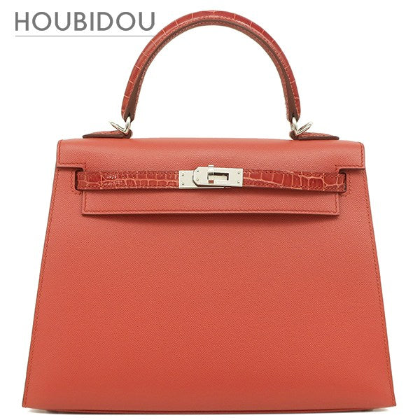 Hermes Kelly Touch 25 Red Croc 2-Way Bag
