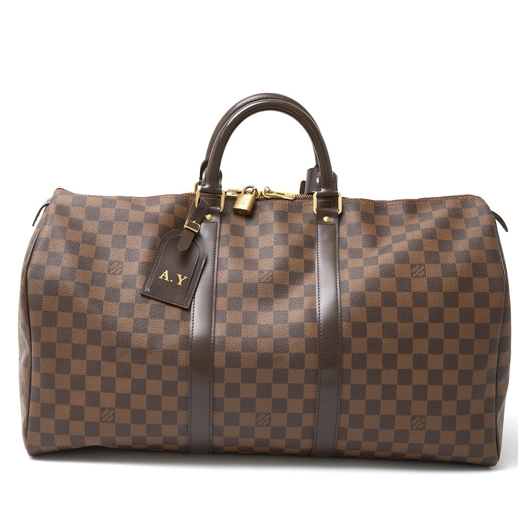 Louis Vuitton Damier Ebene Leather Keepall 50 Bag