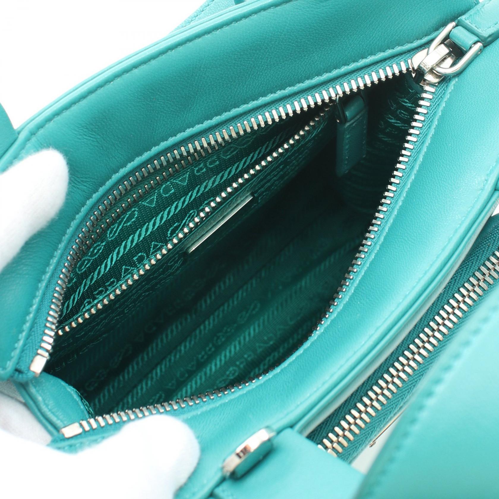 Prada Leather Handbag Green 1BG418