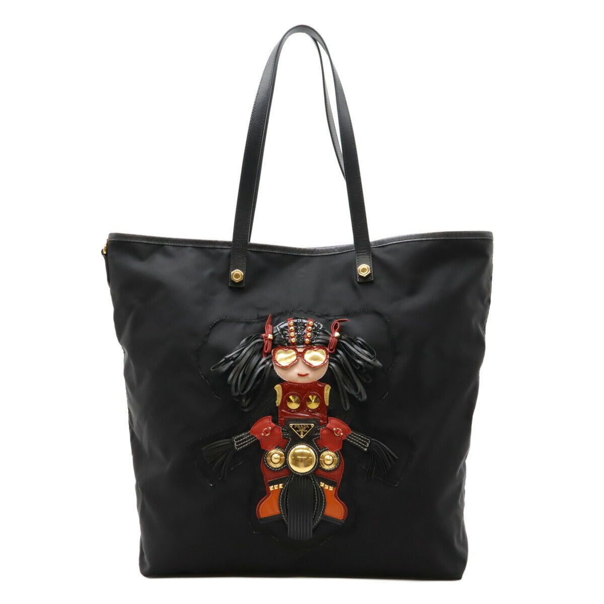 Prada Nylon Leather Robot Logo Tote Bag