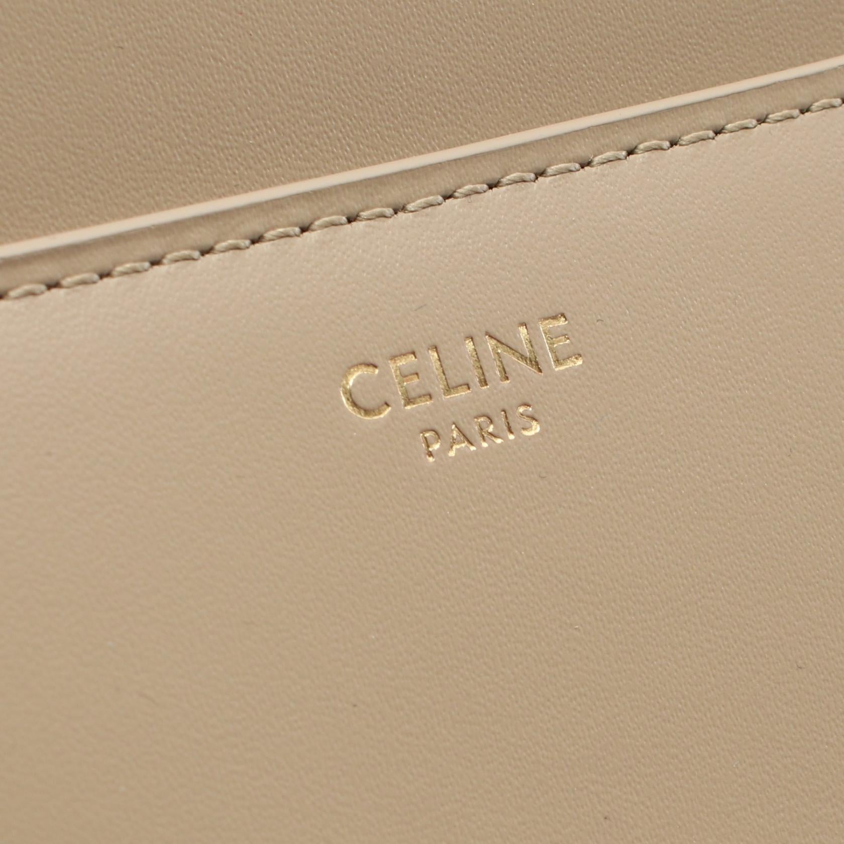 Celine 16 Small Leather Handbag Beige