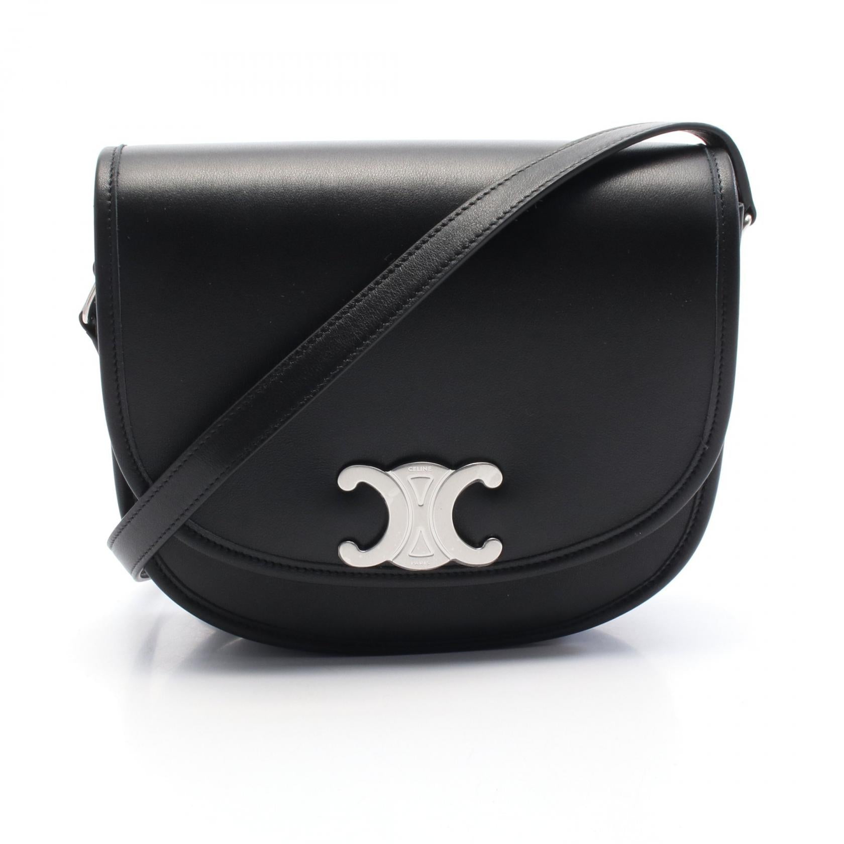 Celine Triomphe Leather Shoulder Bag Black