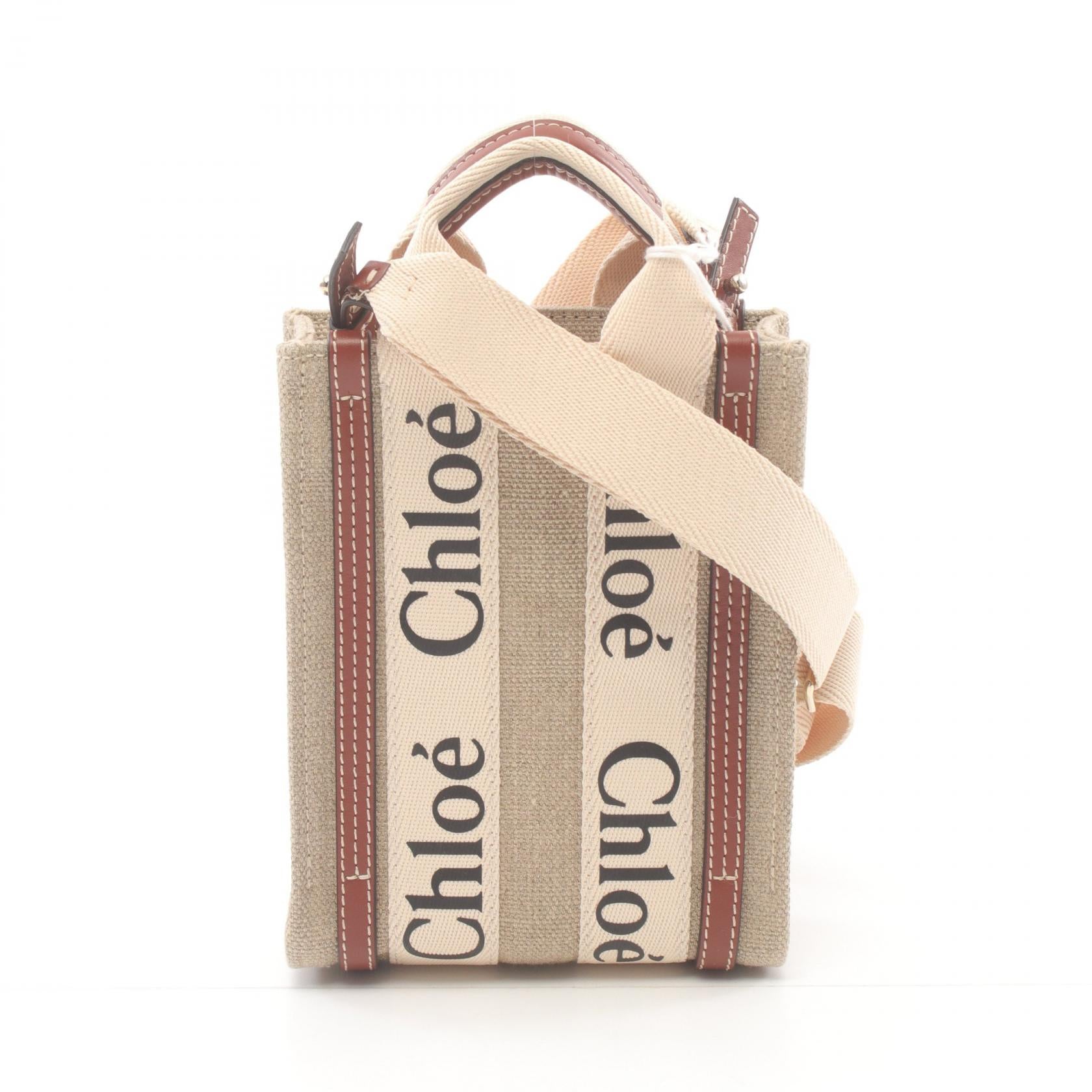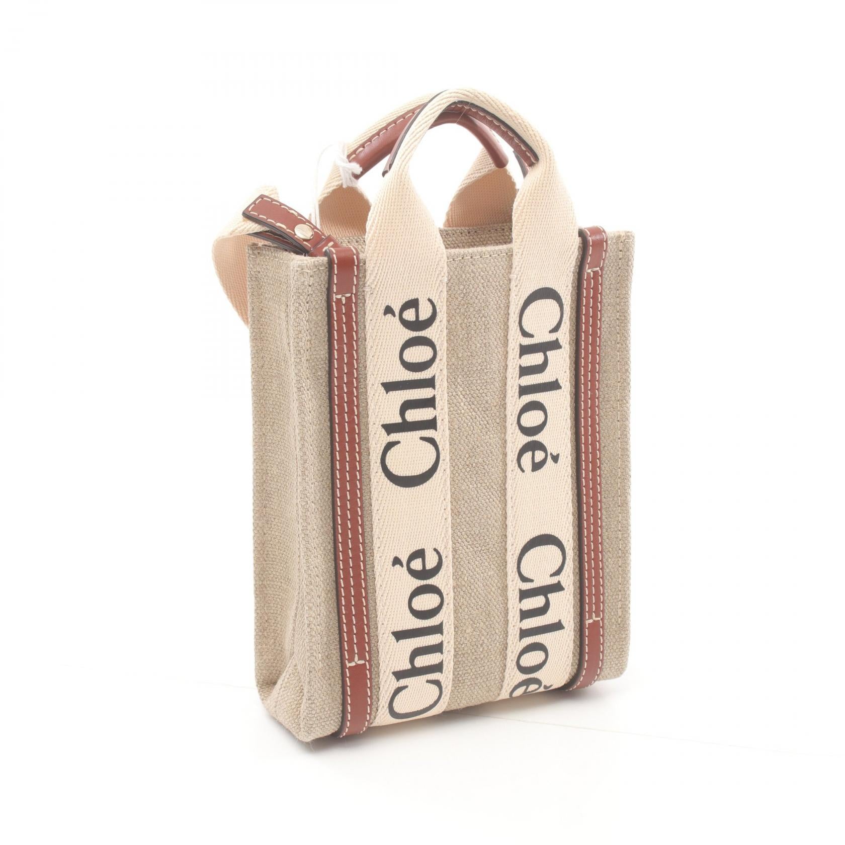 Chloe Woody Canvas Leather Mini Tote Bag