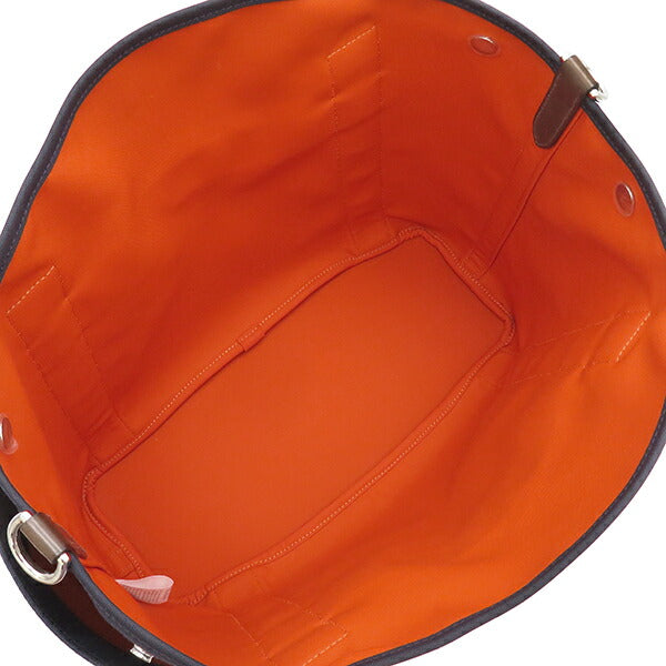 Hermes 2WAY Bag Sac de Pansage Groom Cotton Polyurethane Polyamide Navy Orange