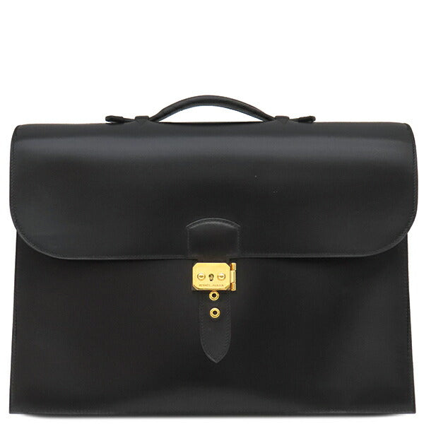 Product Name Hermes Box Calf Sac a Depeche Briefcase Black