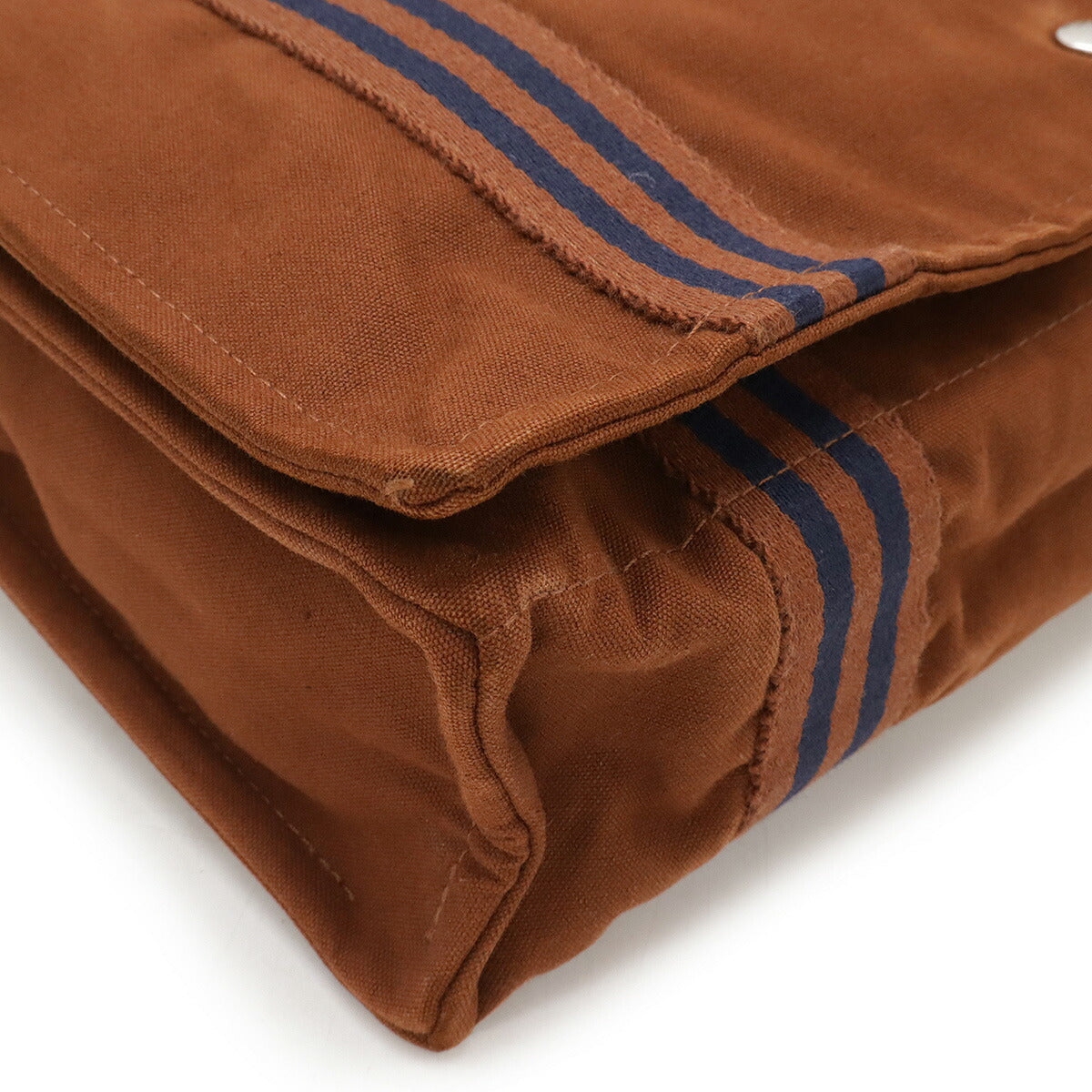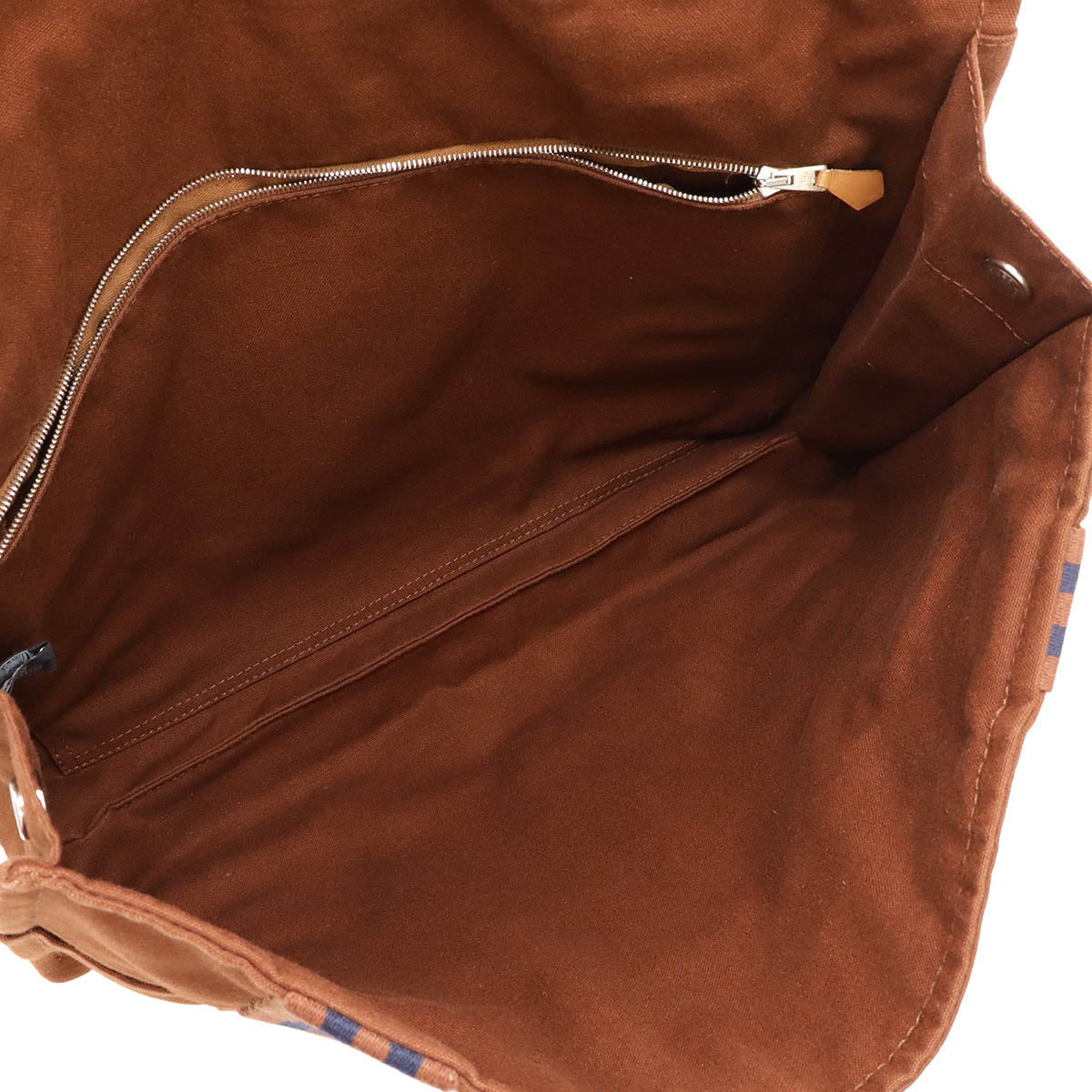 HERMES Canvas Shoulder Bag Brown Navy