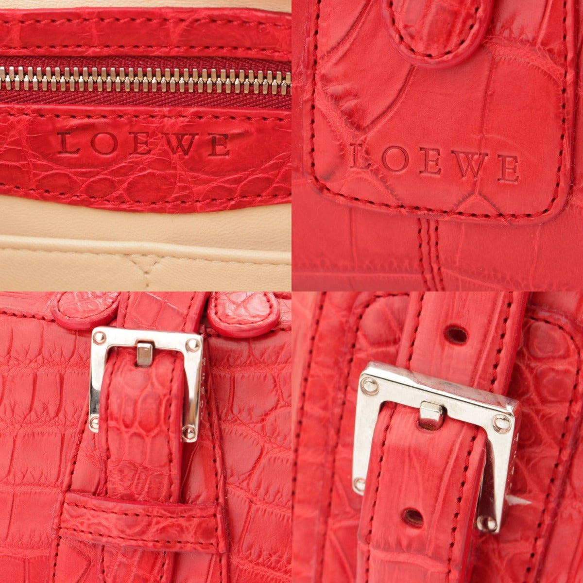 Loewe Crocodile Leather Handbag Red