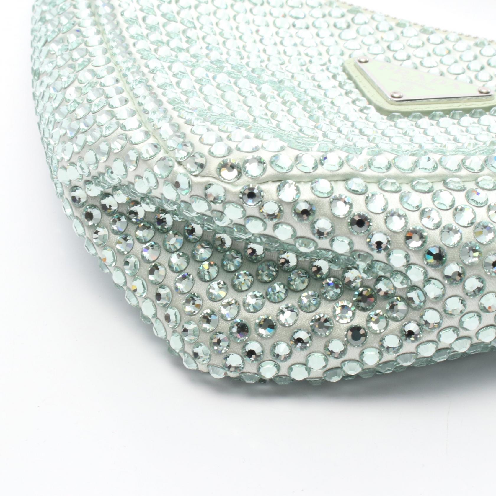 Prada Fabric Rhinestone Handbag Green