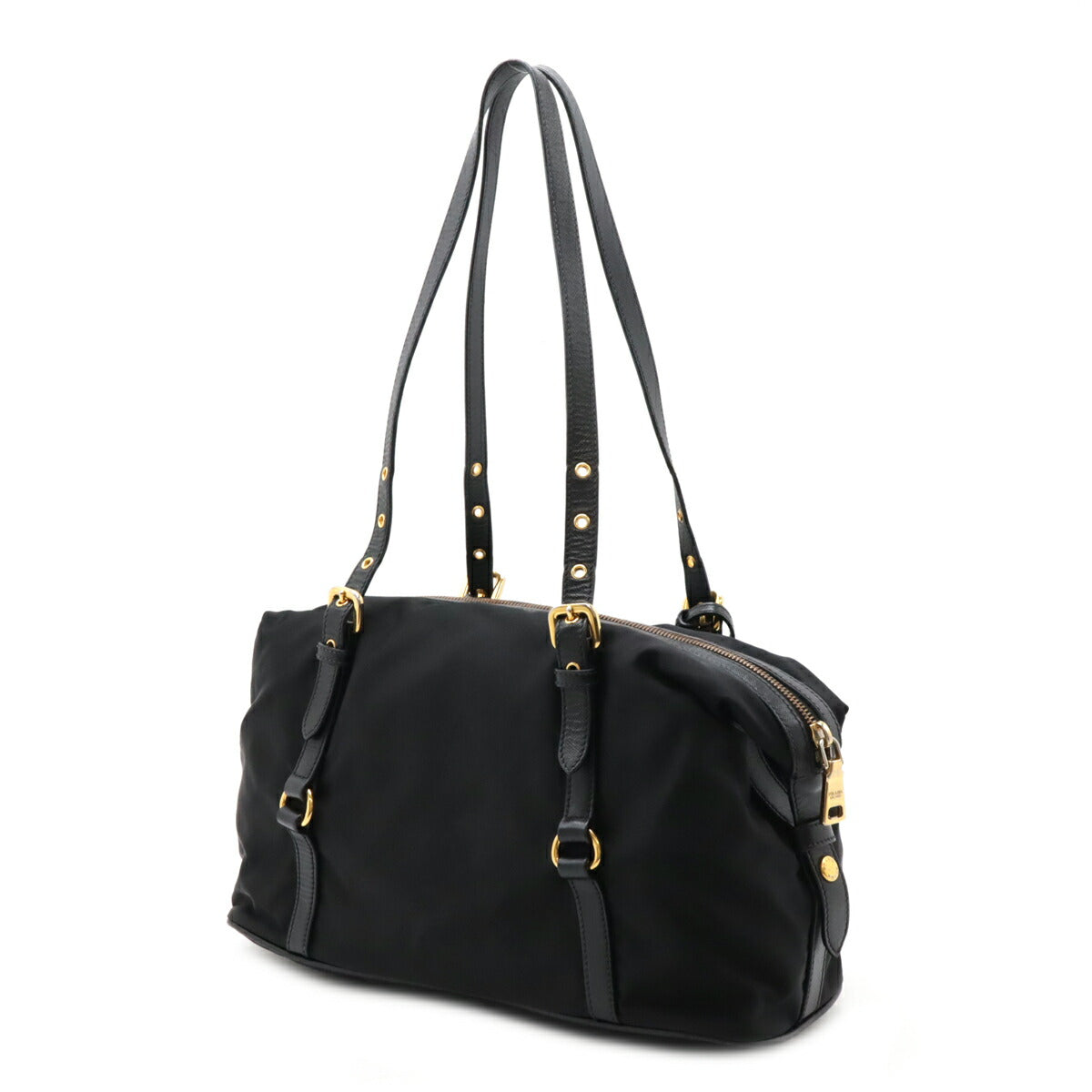Prada Logo Jacquard Nylon Leather Shoulder Bag