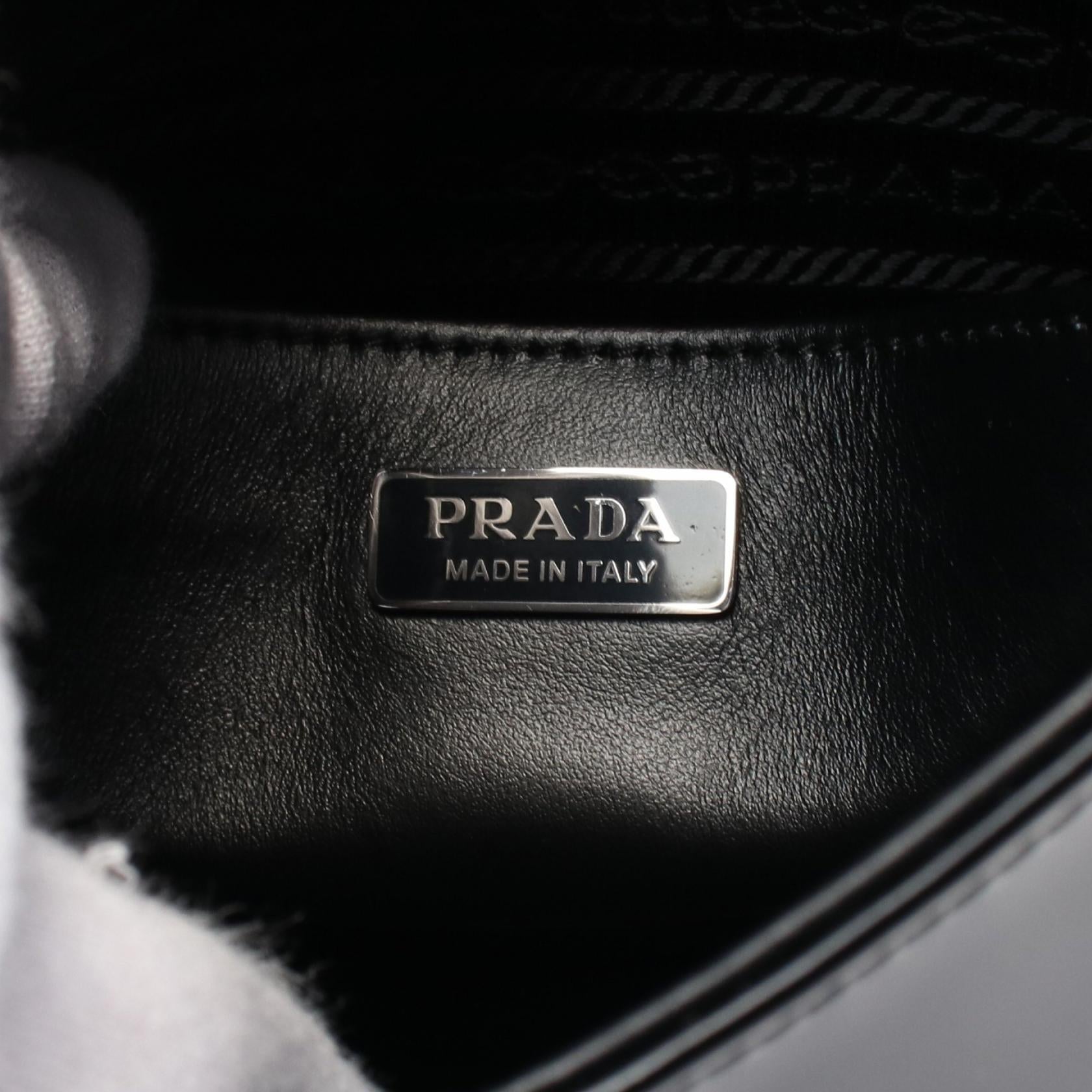 Prada PATTINA Leather Shoulder Bag Black