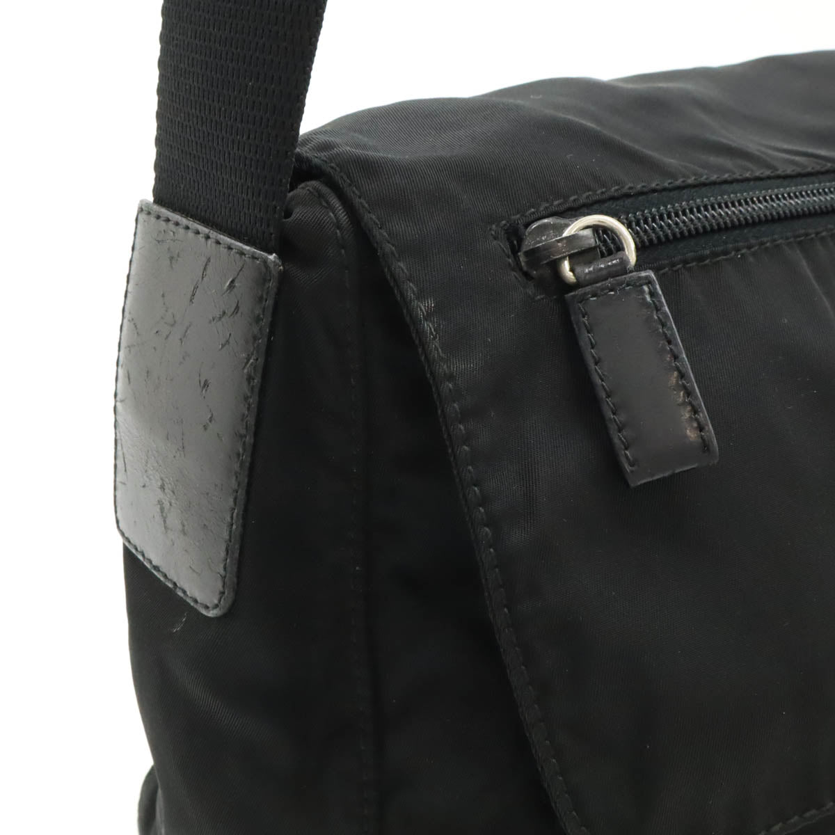 Prada Triangle Logo Nylon Leather Shoulder Bag