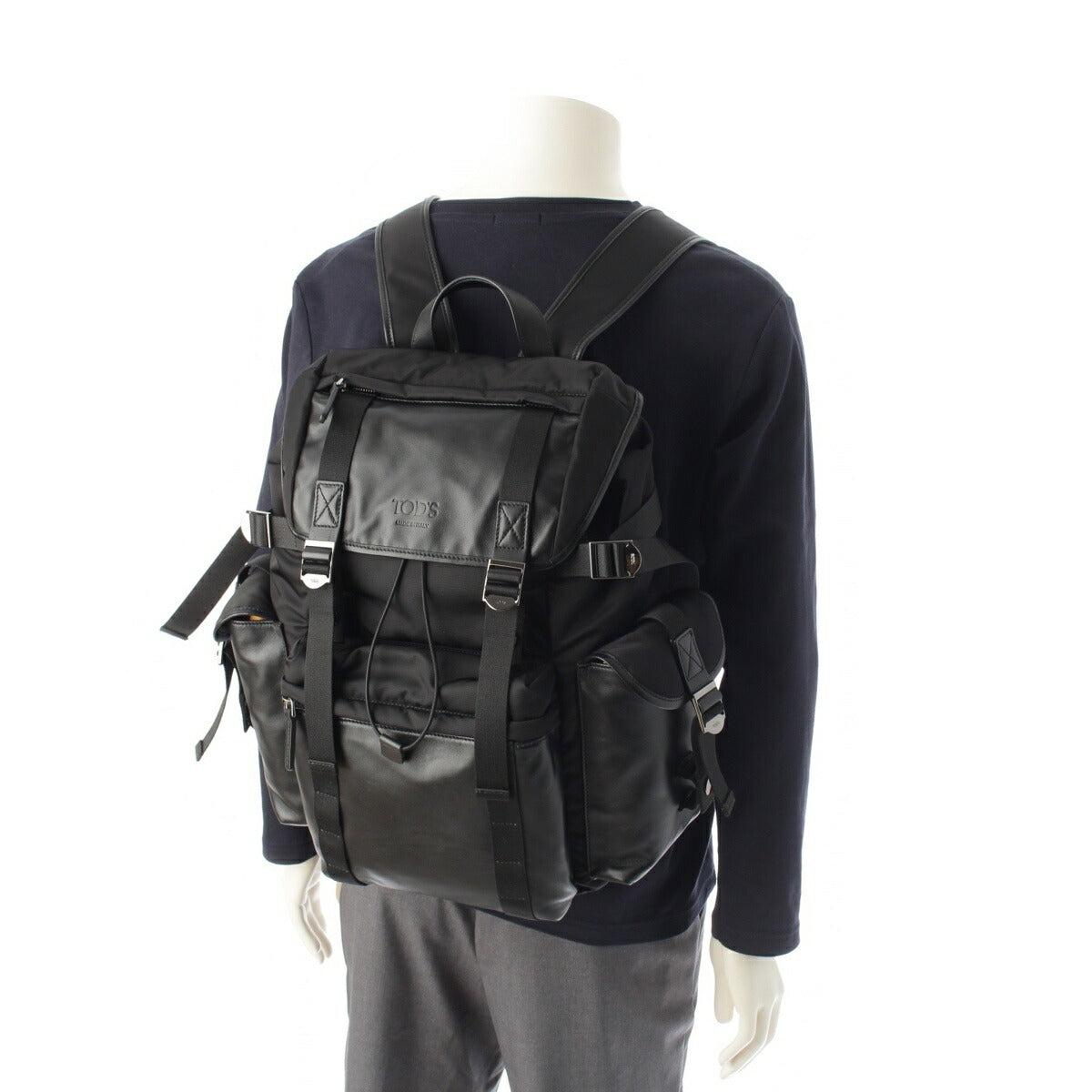 Tod's Fabric & Leather Medium Backpack Black