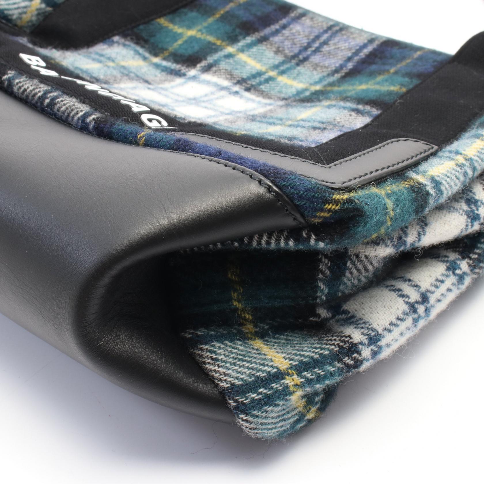 Balenciaga Navy Cabas S Wool Leather Tote