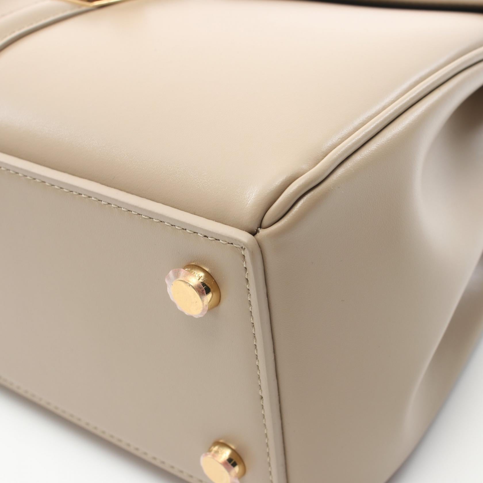 Celine 16 Small Leather Handbag Beige