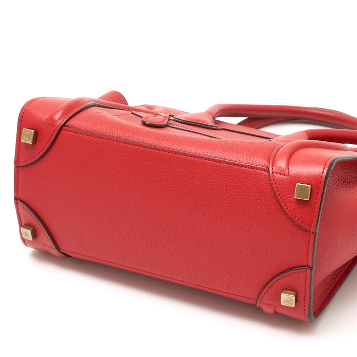 Celine Luggage Micro Tote Calfskin Red