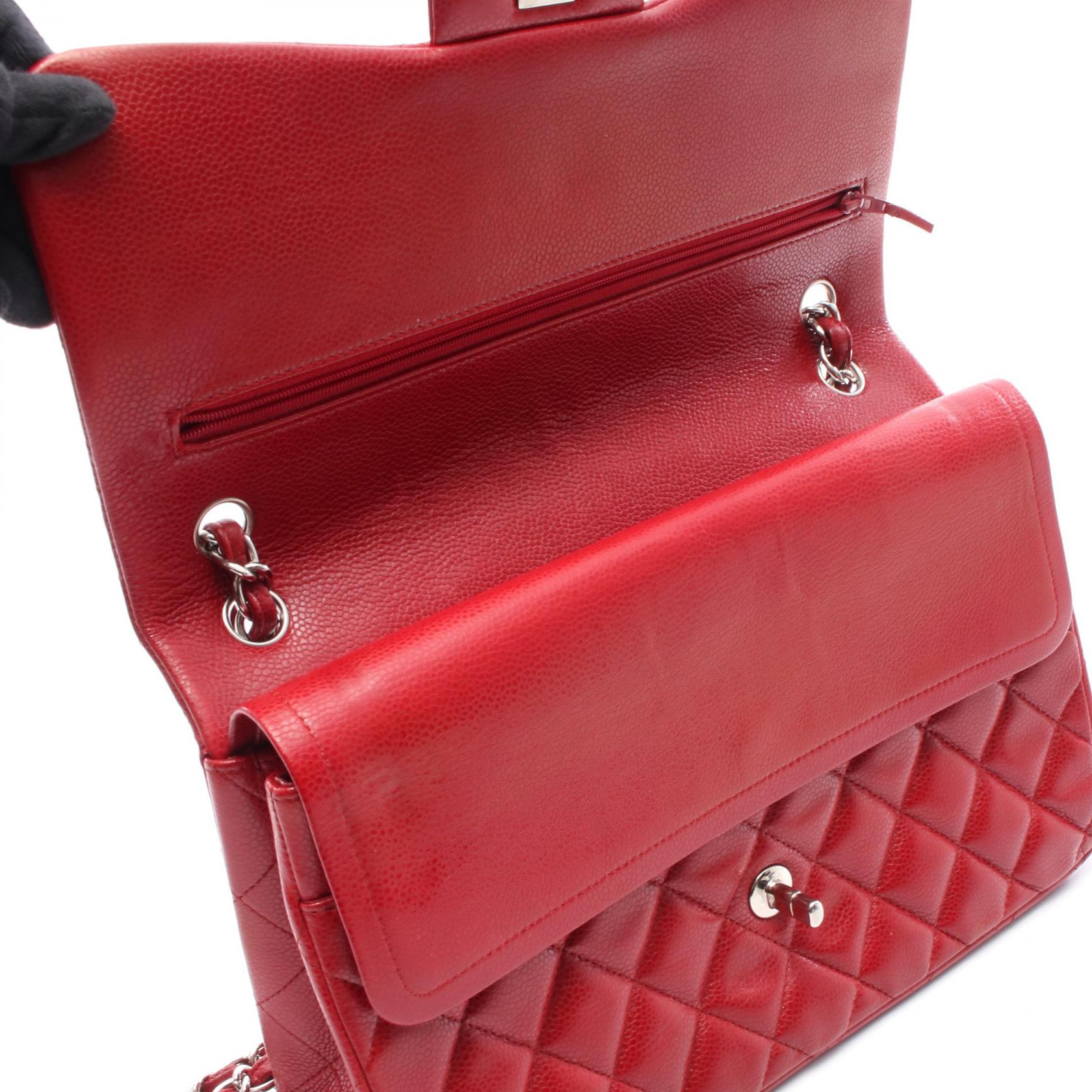 Chanel Caviar Skin Large Flap Shoulder Bag Red