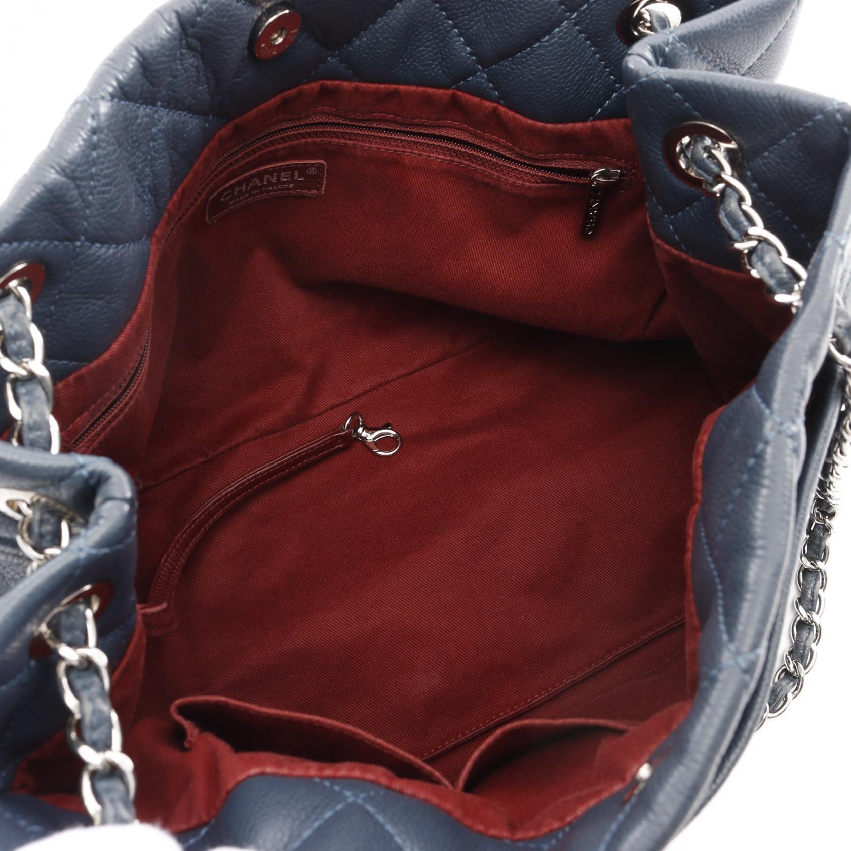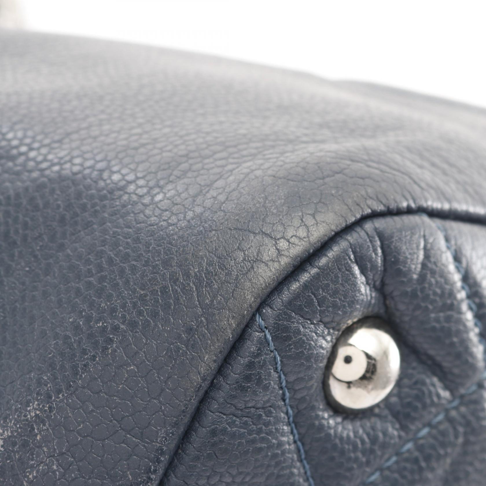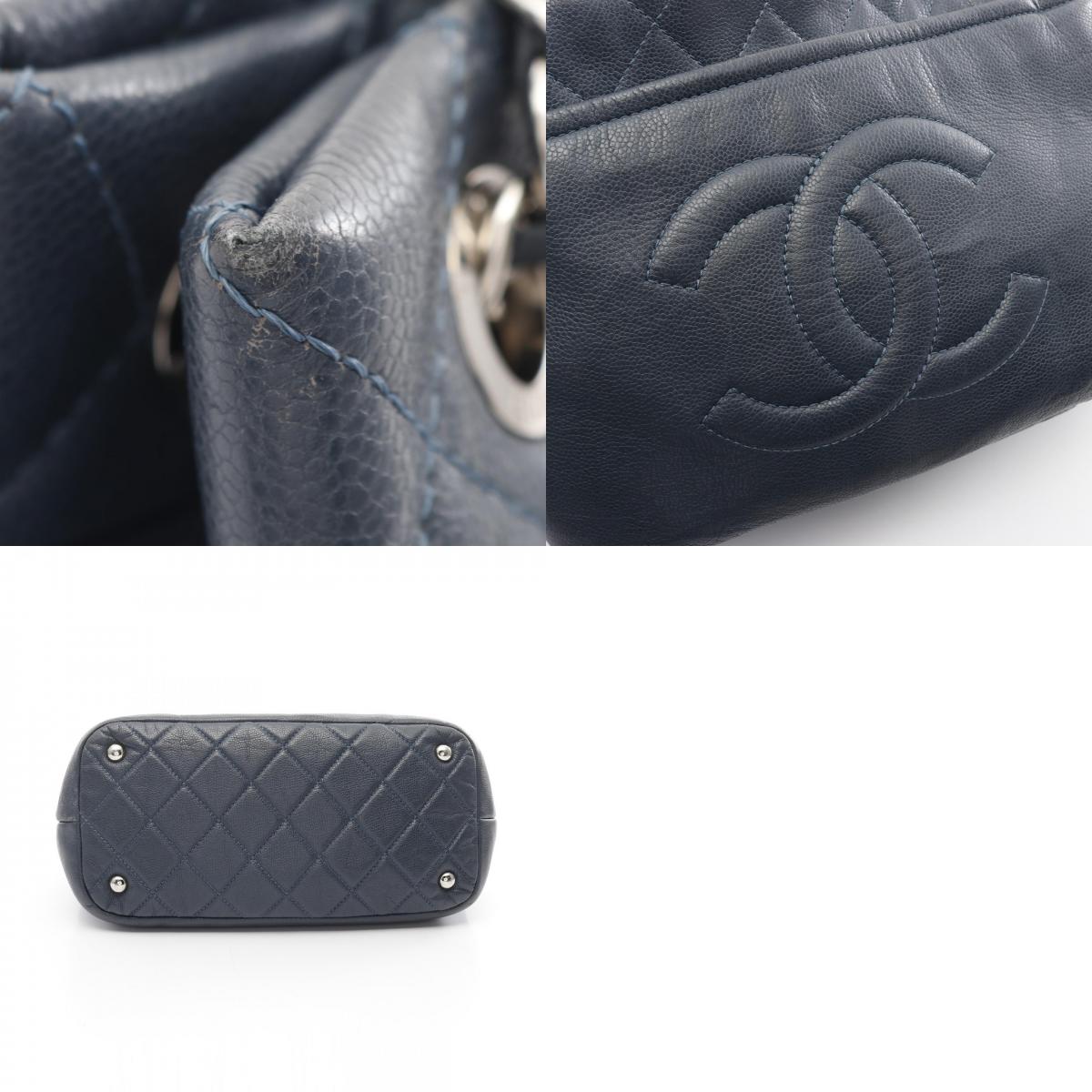 Chanel Matelasse Coco Mark Tote Bag Navy Leather