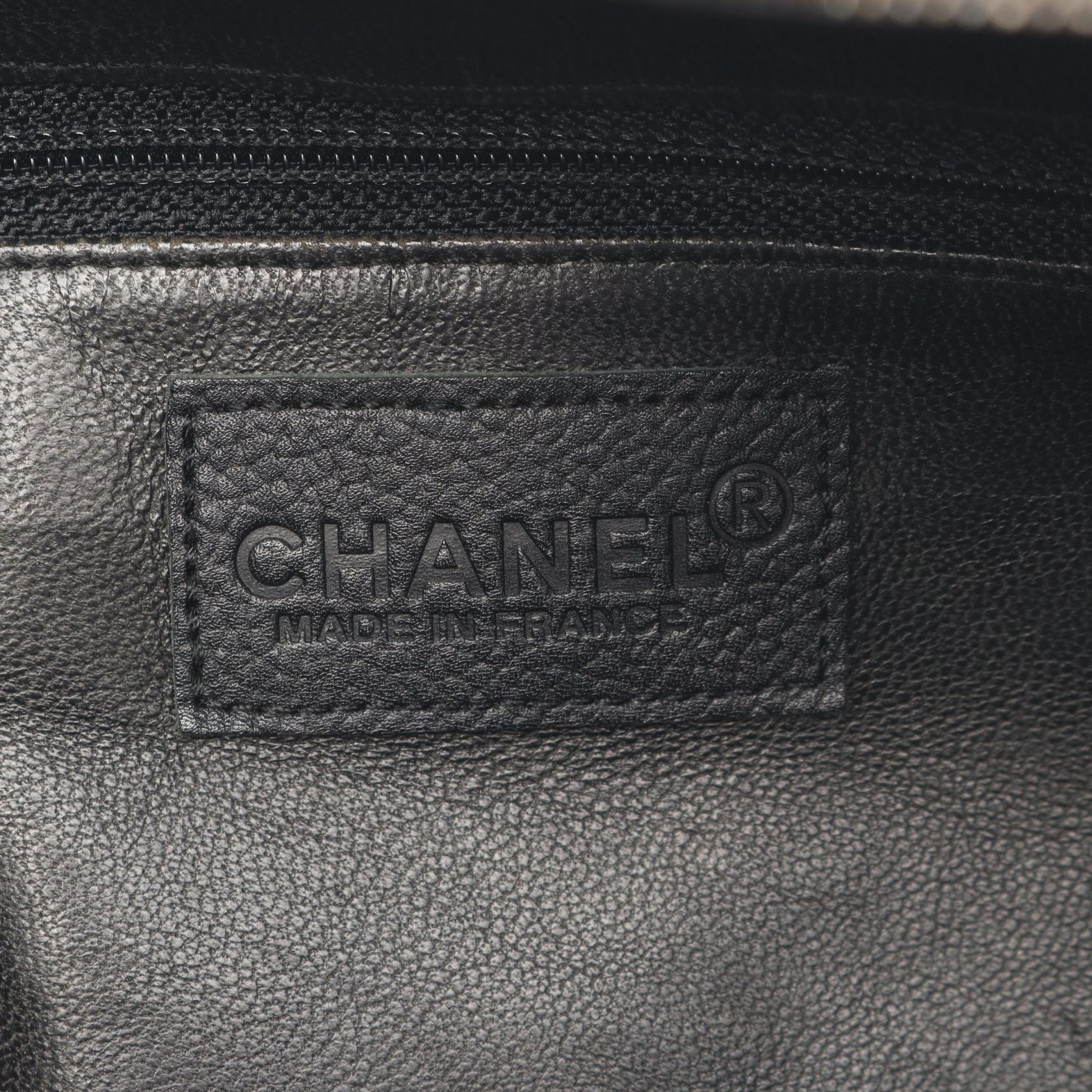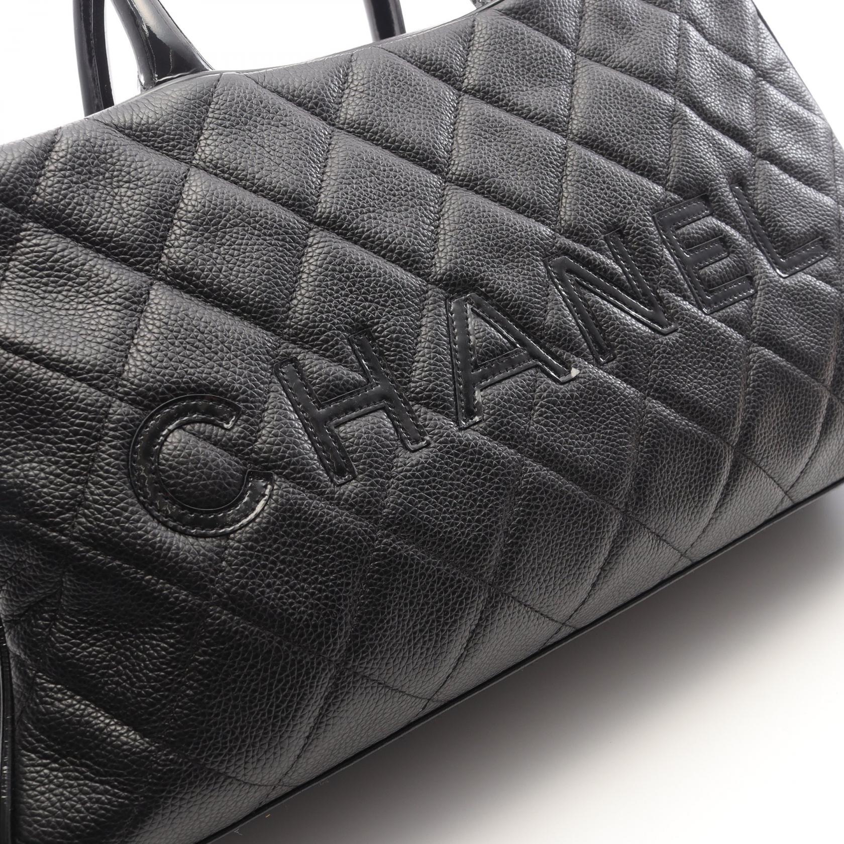 Chanel Matelasse Logo Tote Bag Black Leather