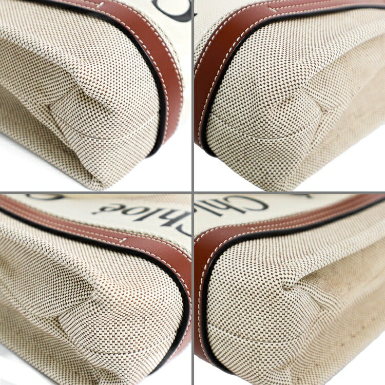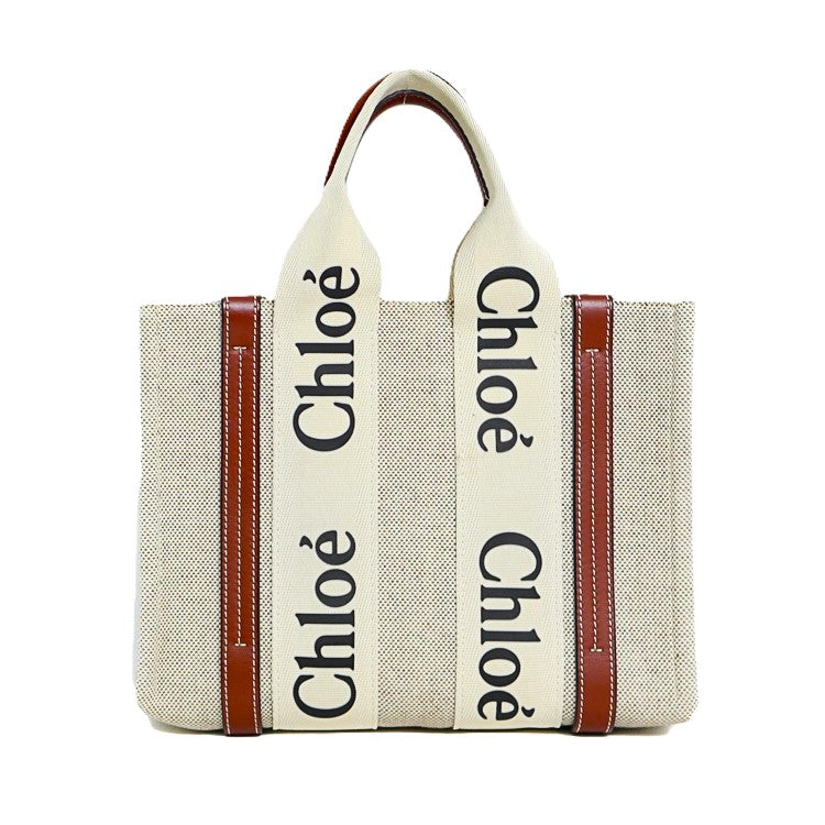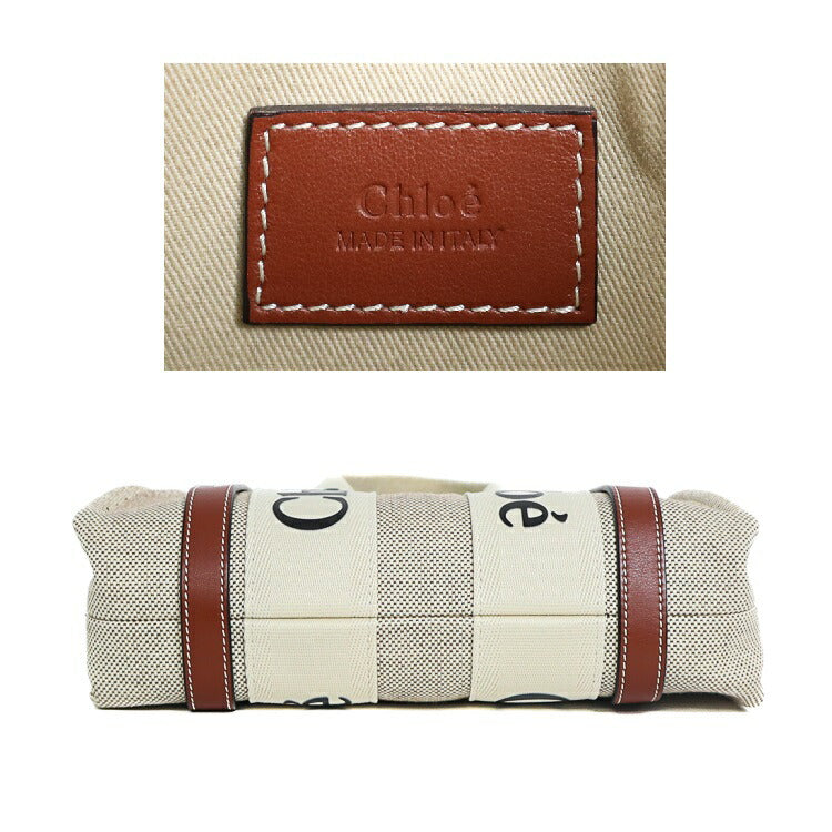 Chloe Woody Small Canvas Leather Tote Bag