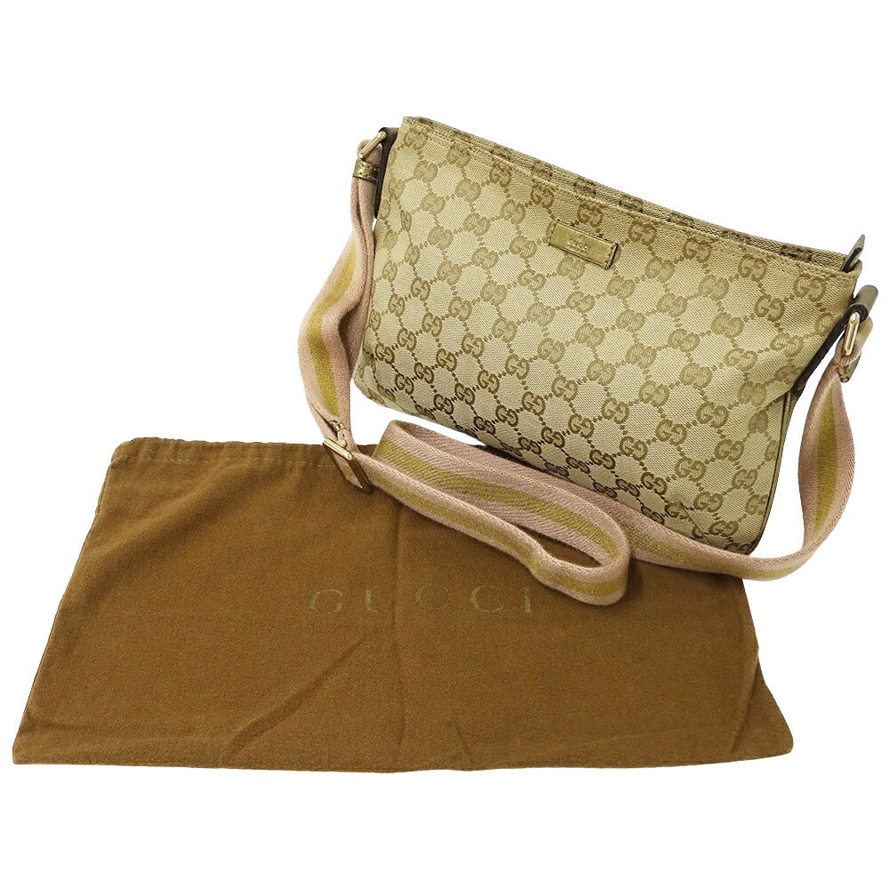 Gucci GG Canvas Shoulder Bag Beige Brown Pink