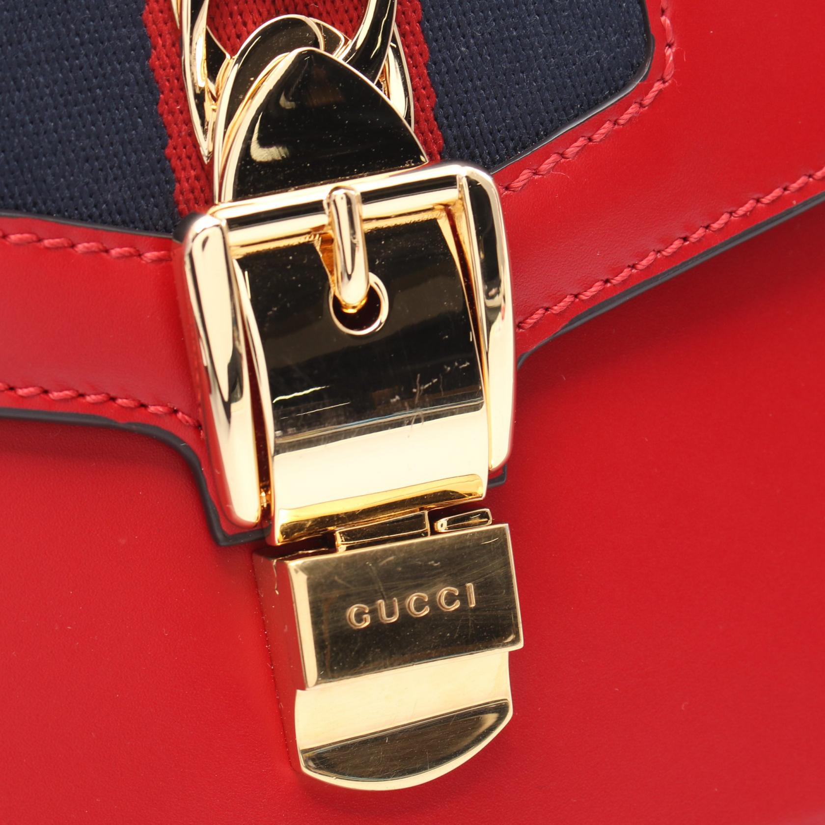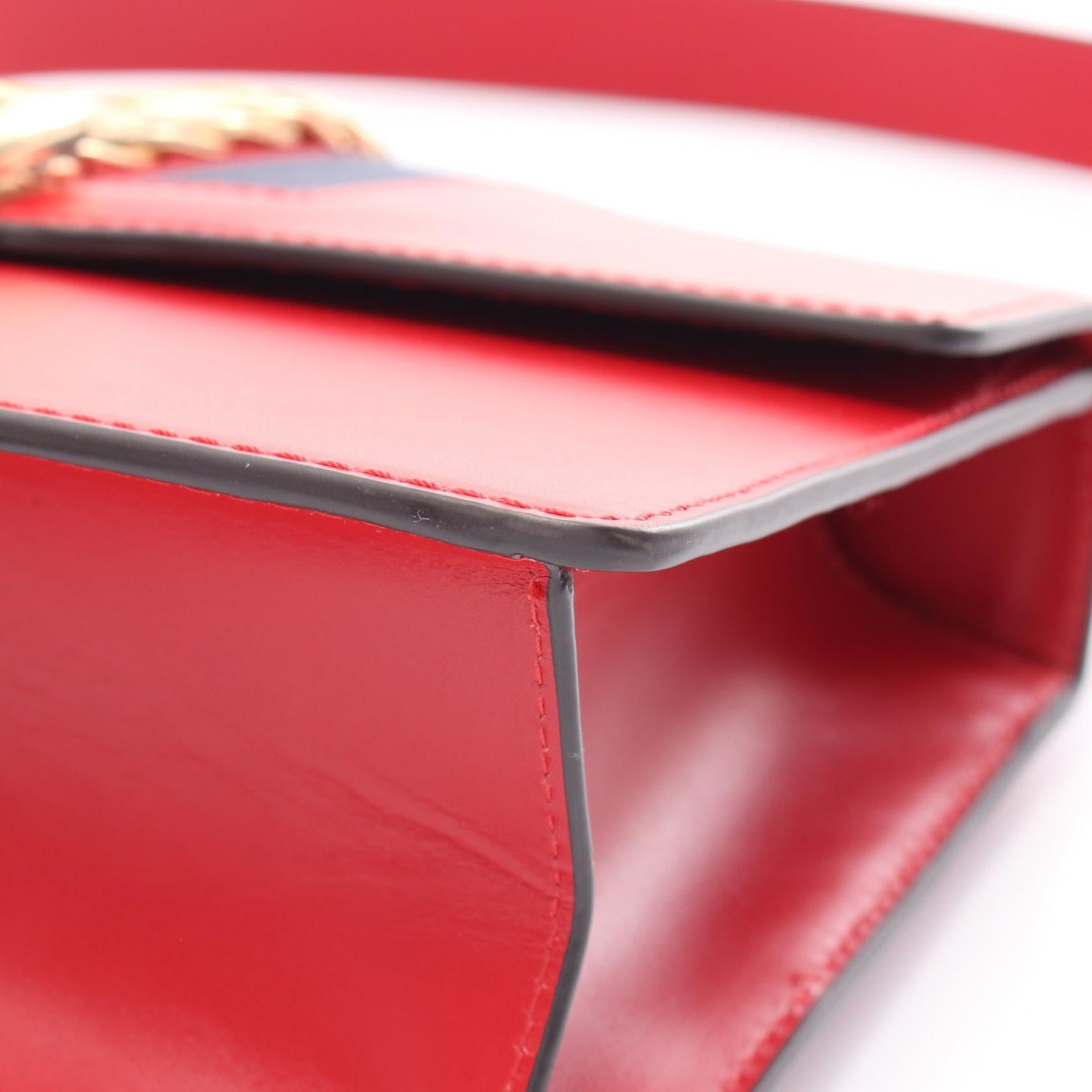 Gucci Sylvie Small Web Line Leather Canvas Shoulder Bag
