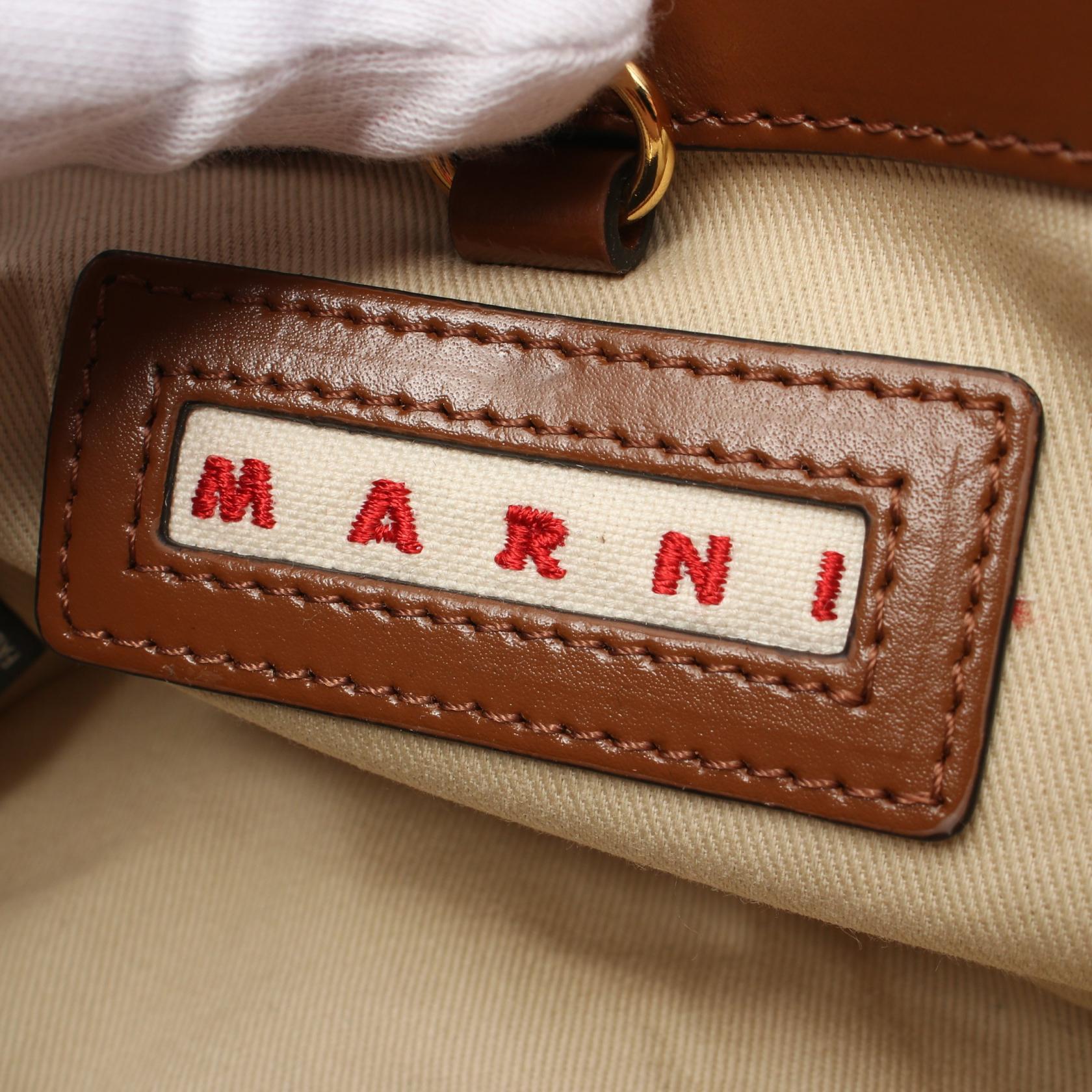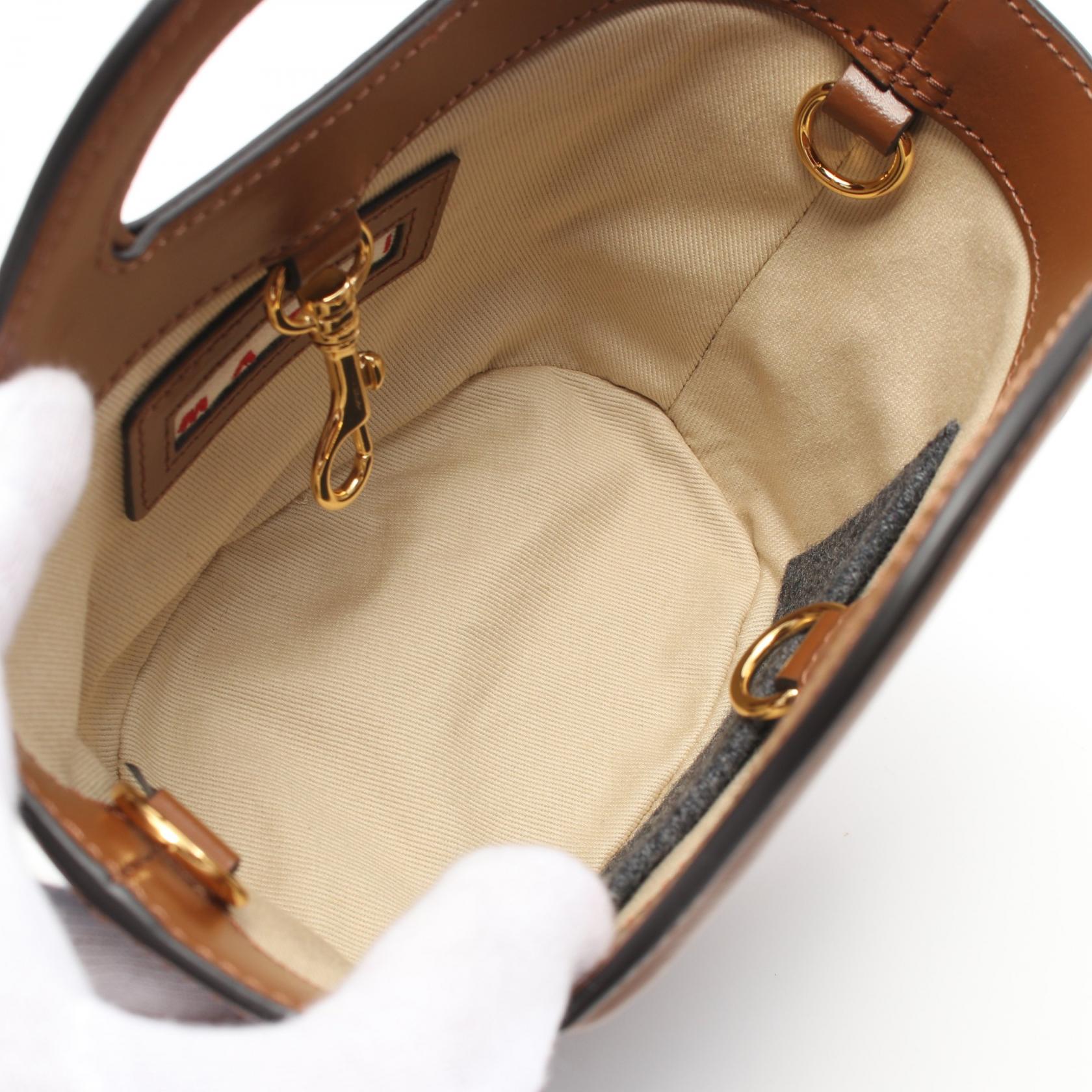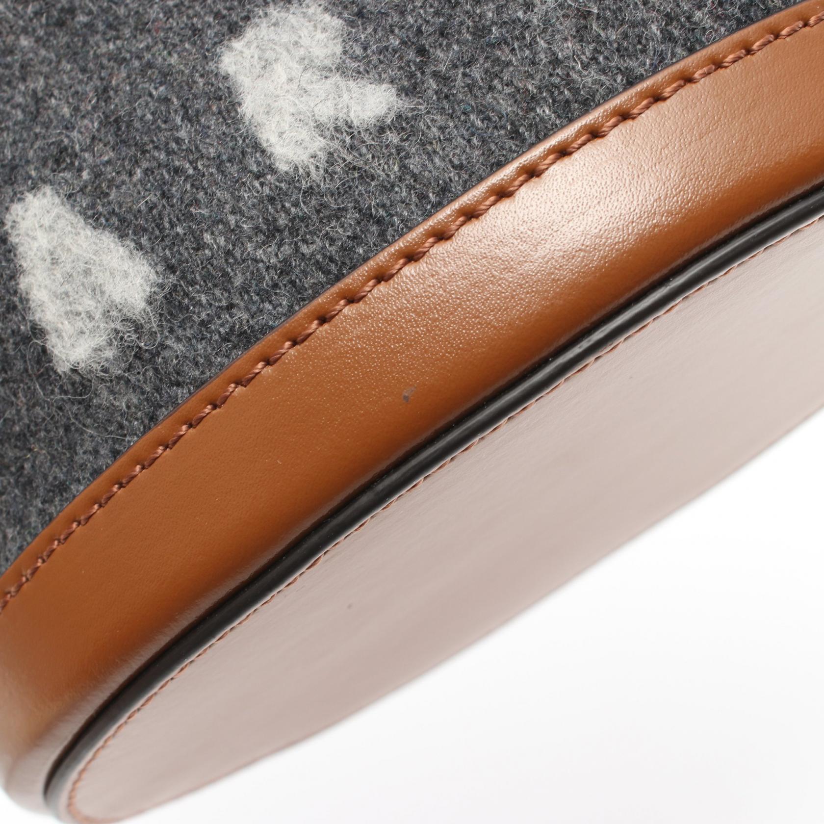 Marni Wool Leather Handbag Gray White Brown