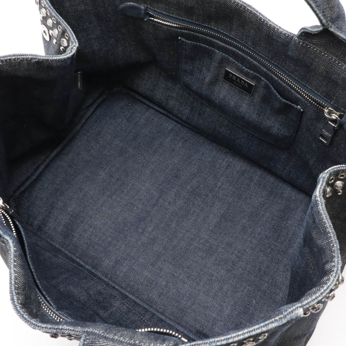 Prada Denim Studded Canapa Tote Bag BN2642