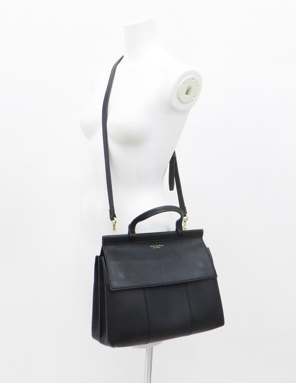 TORY BURCH BLOCK T 2WAY Leather Handbag Black